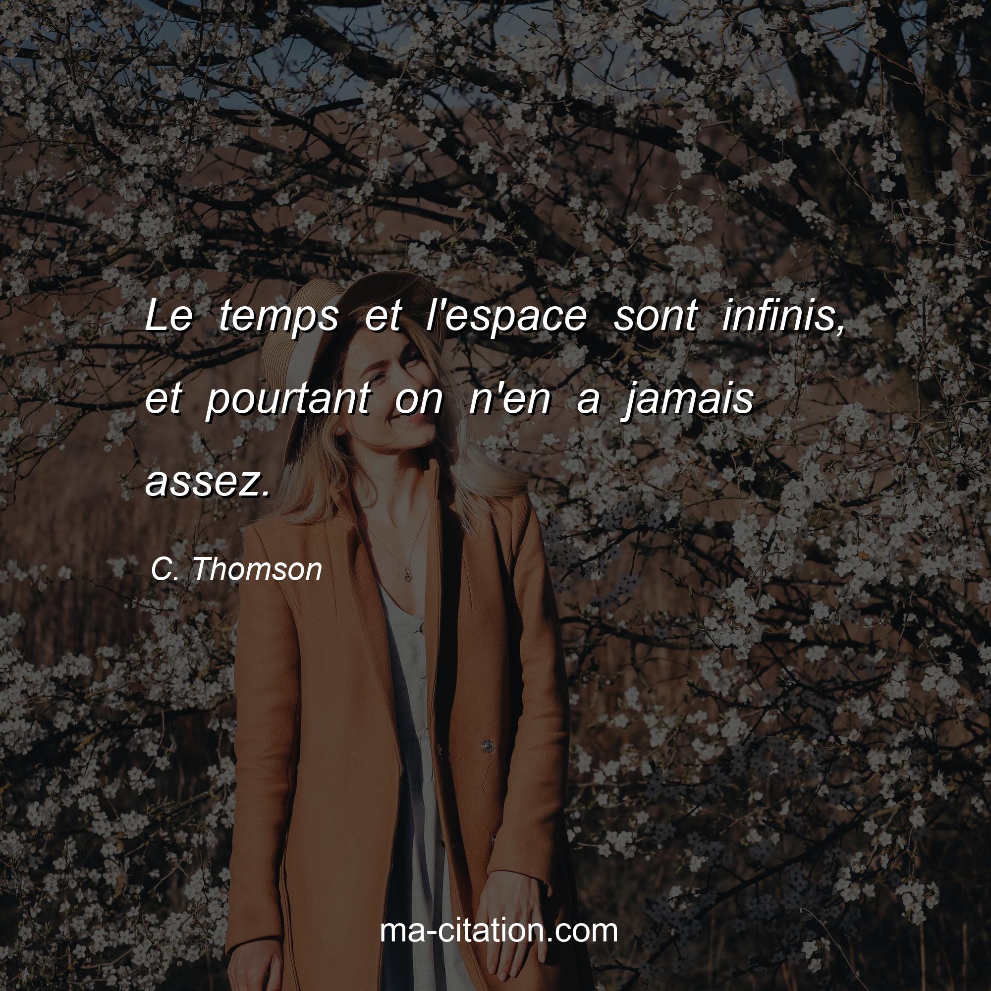 C. Thomson est l'auteur de la citation sur la vie "Le temps et l'espace sont infinis, et pourtant on n'en a jamais assez.".