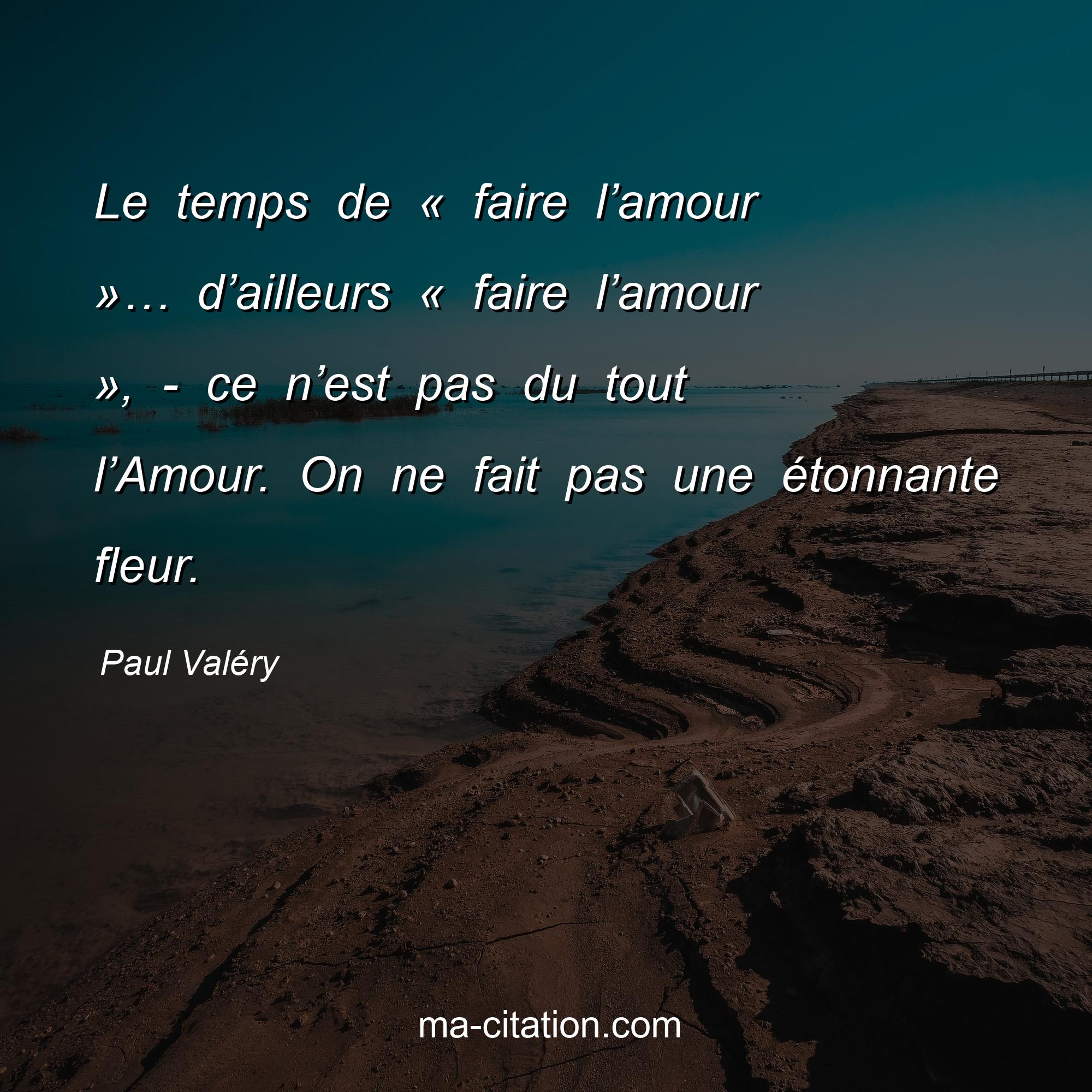 Citation sur la vie de Paul Valéry :Le temps de « faire l’amour »… d’ailleurs « faire l’amour », - ce n’est pas du tout l’Amour. On ne fait pas une étonnante fleur.