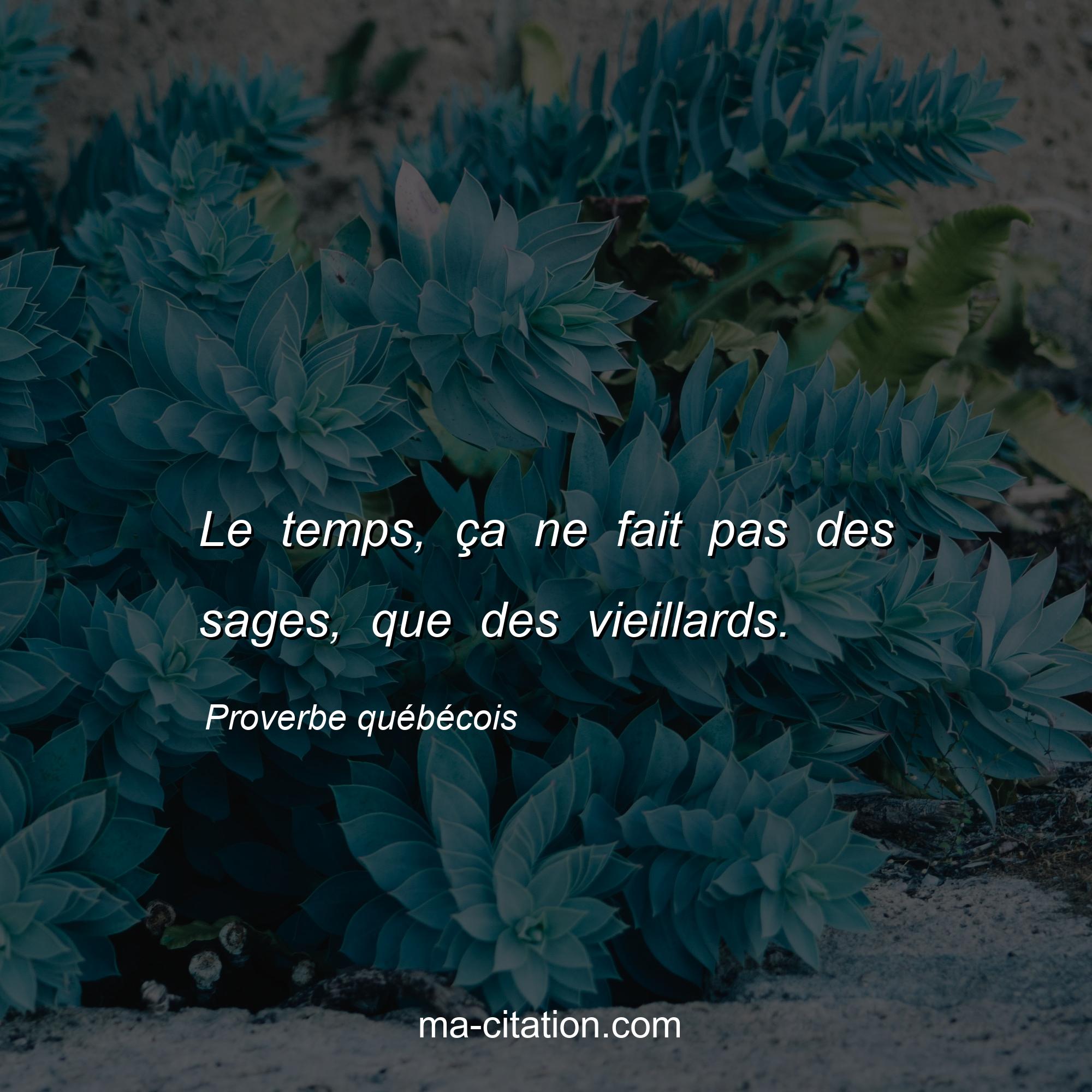 Proverbe québécois sur la vie :Le temps, ça ne fait pas des sages, que des vieillards.