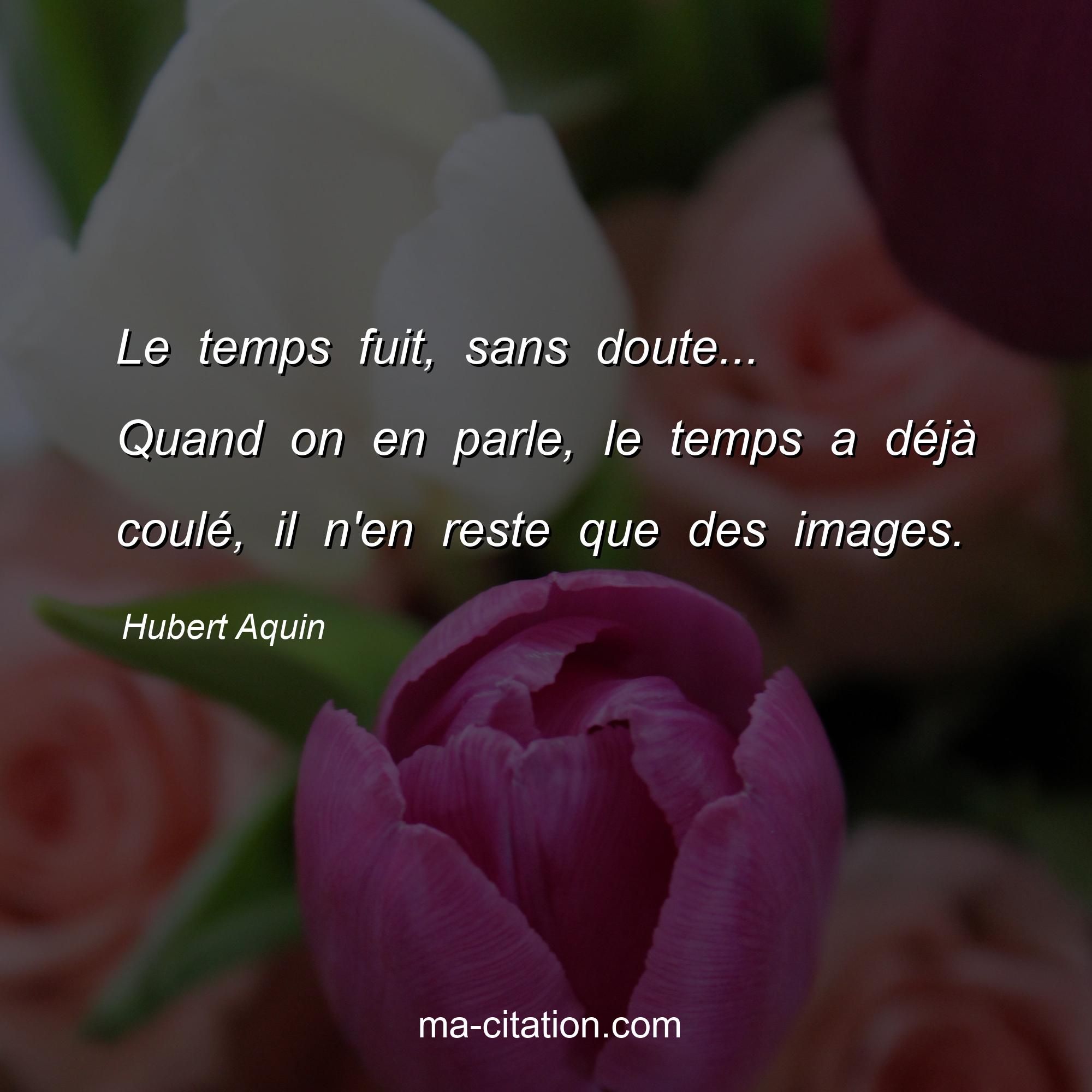 Citation sur la vie de Hubert Aquin :Le temps fuit, sans doute... Quand on en parle, le temps a déjà coulé, il n'en reste que des images.