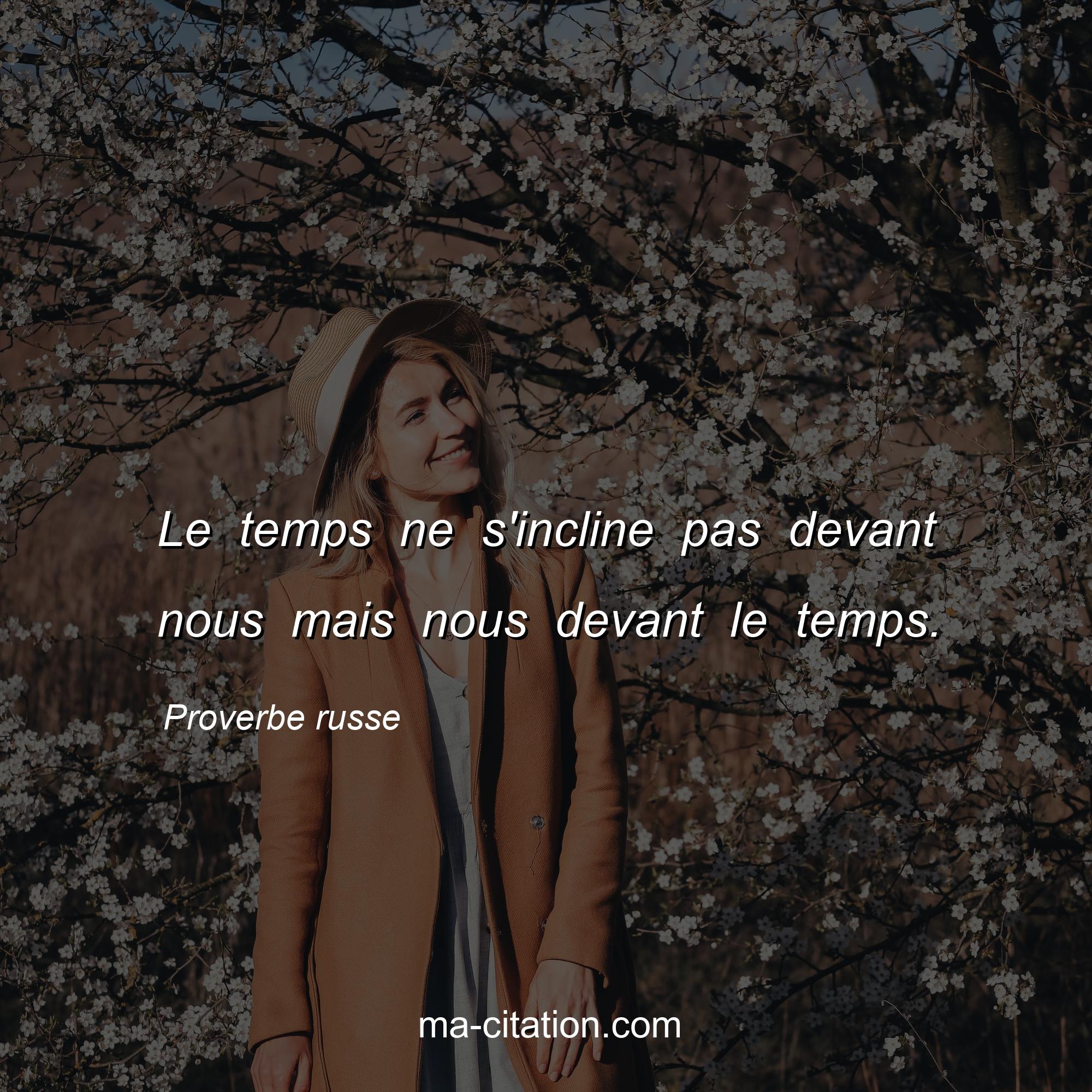 Proverbe russe sur la vie :Le temps ne s'incline pas devant nous mais nous devant le temps.