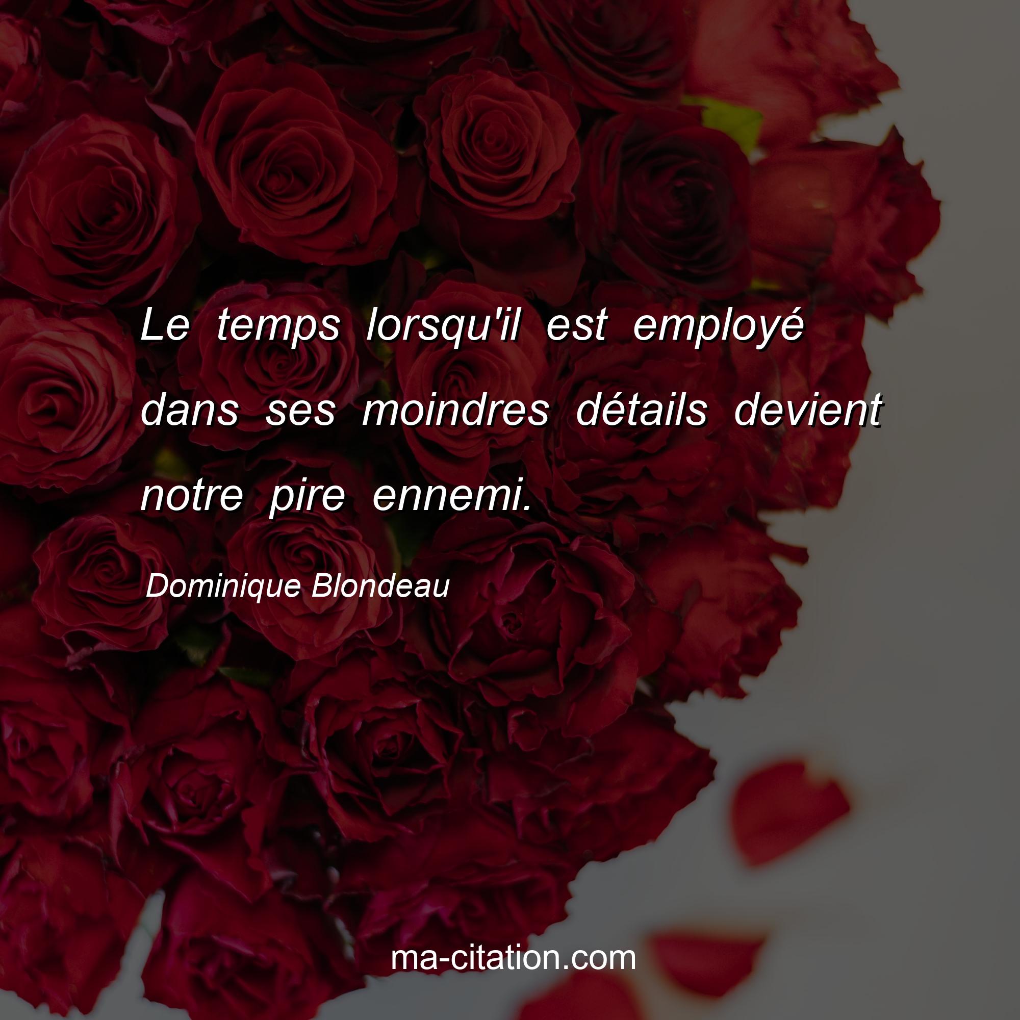 Dominique Blondeau est l'auteur de la citation sur la vie "Le temps lorsqu'il est employé dans ses moindres détails devient notre pire ennemi.".