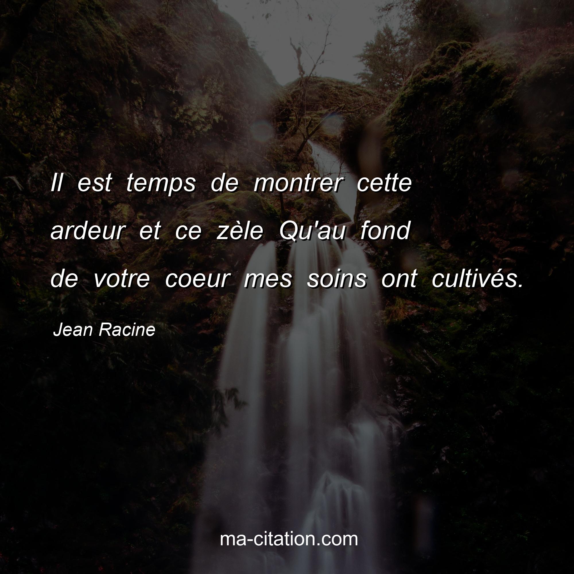 Jean Racine est l'auteur de la citation sur la vie "Il est temps de montrer cette ardeur et ce zèle Qu'au fond de votre coeur mes soins ont cultivés.".