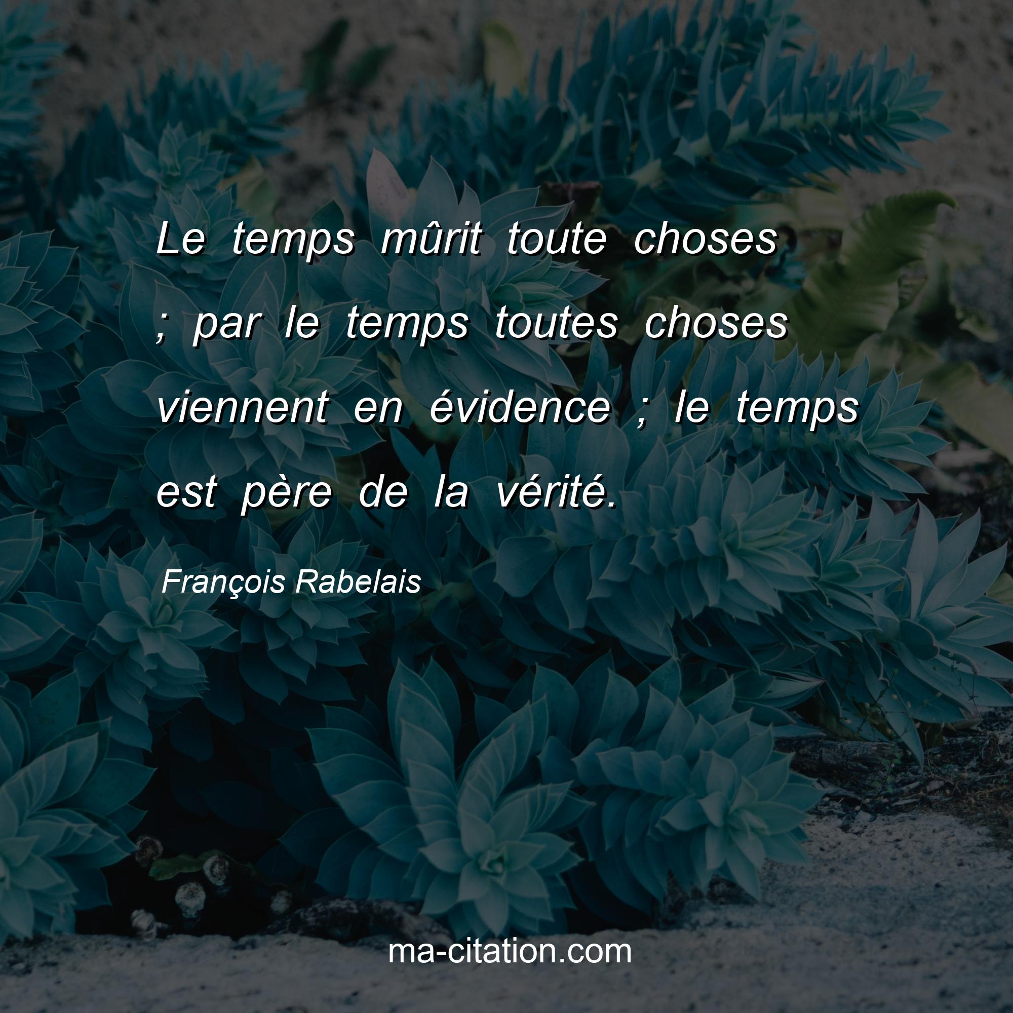 Citation sur la vie de François Rabelais :Le temps mûrit toute choses ; par le temps toutes choses viennent en évidence ; le temps est père de la vérité.