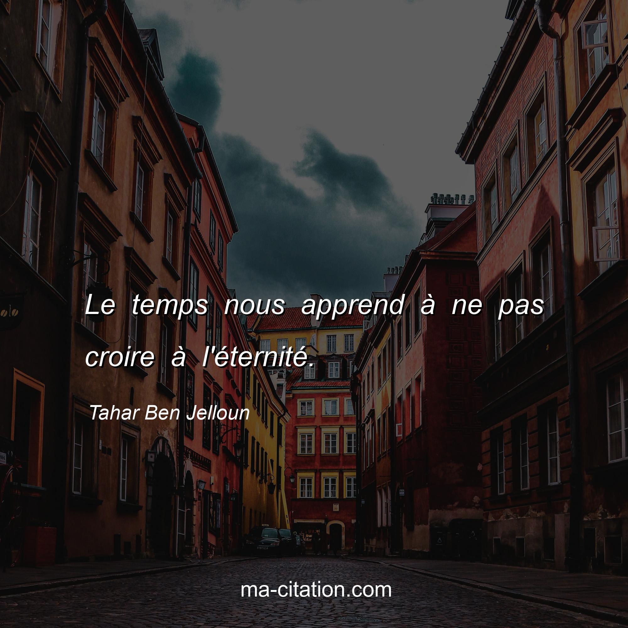 Citation sur la vie de Tahar Ben Jelloun :Le temps nous apprend à ne pas croire à l'éternité.