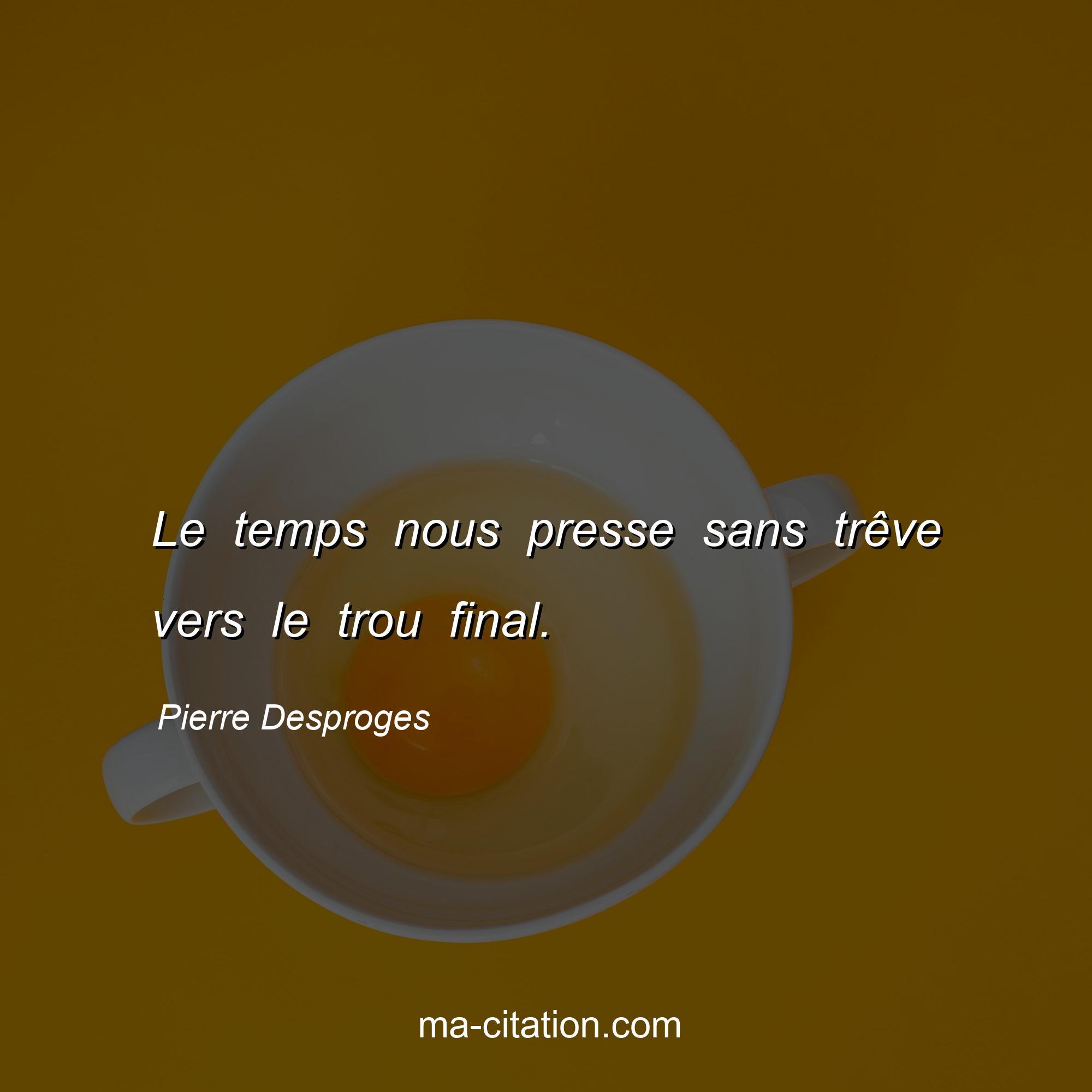 Citation sur la vie de Pierre Desproges :Le temps nous presse sans trêve vers le trou final.