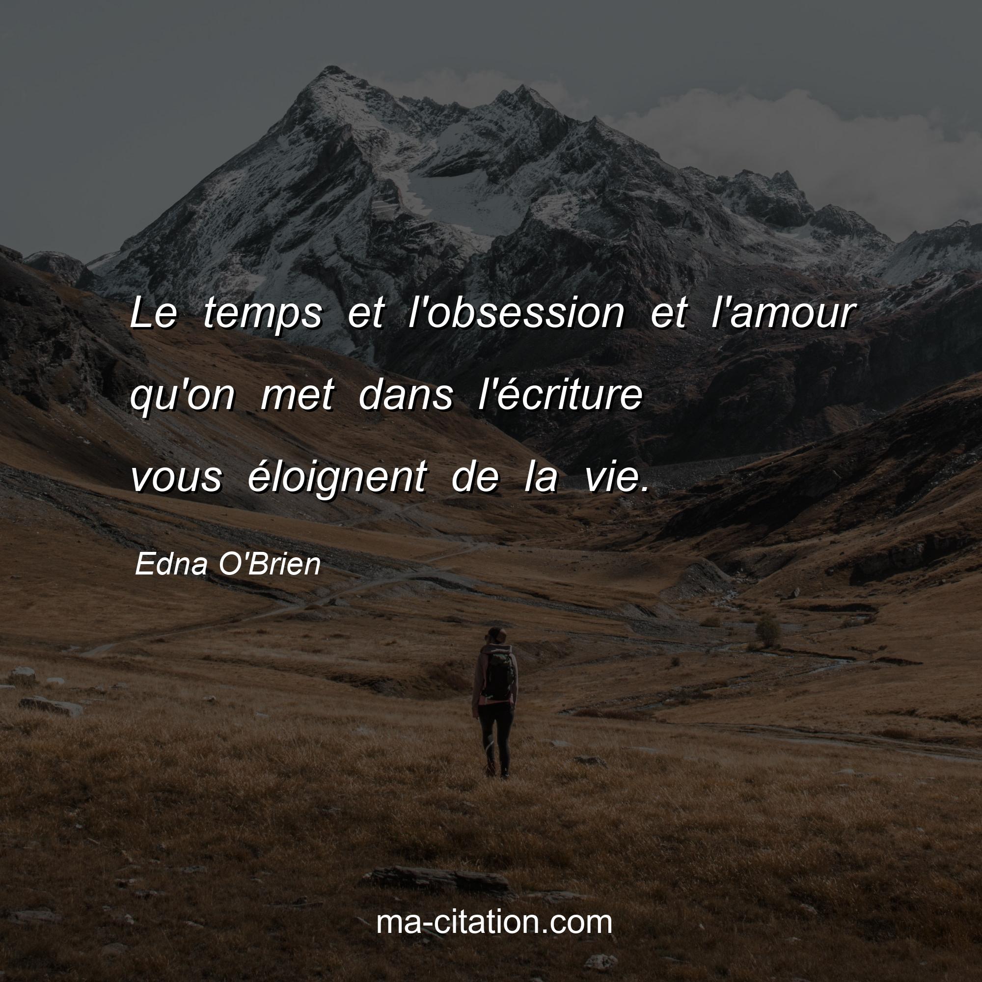 Citation sur la vie d'Edna O'Brien :Le temps et l'obsession et l'amour qu'on met dans l'écriture vous éloignent de la vie.