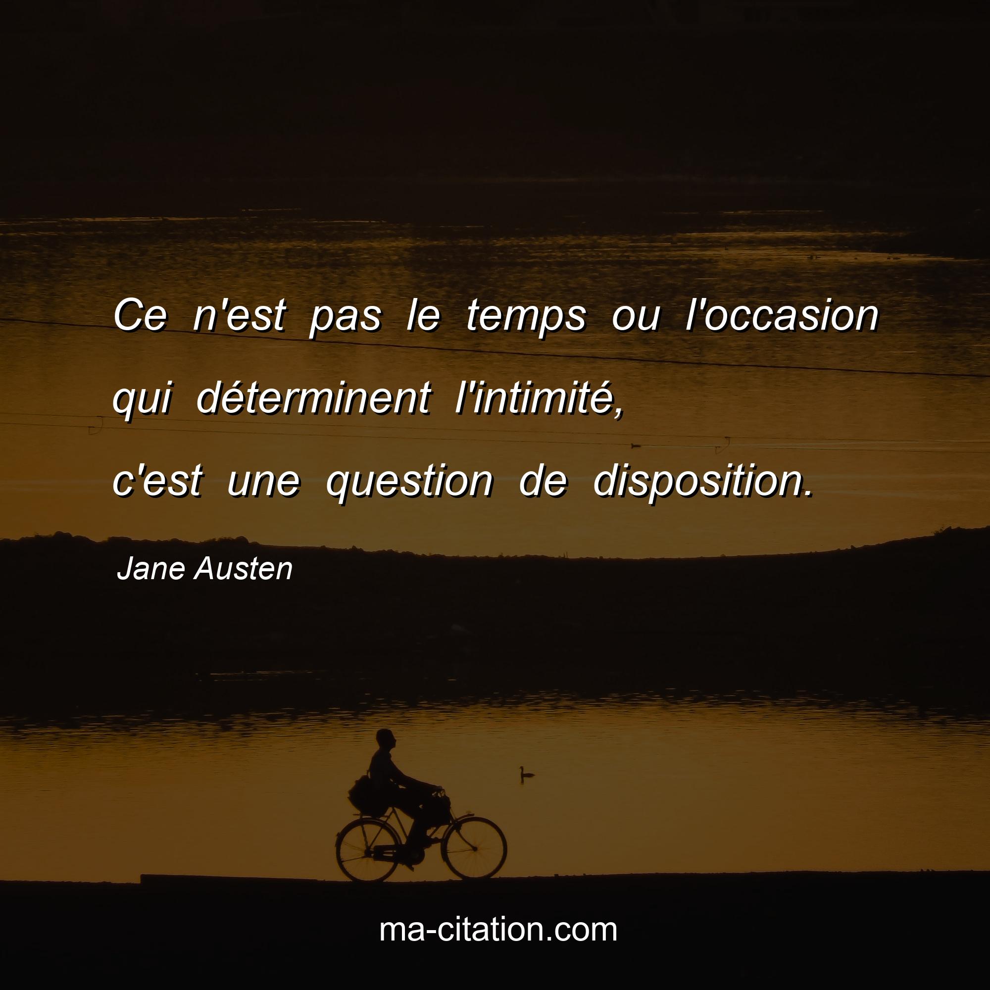 Citation sur la vie de Jane Austen :Ce n'est pas le temps ou l'occasion qui déterminent l'intimité, c'est une question de disposition.