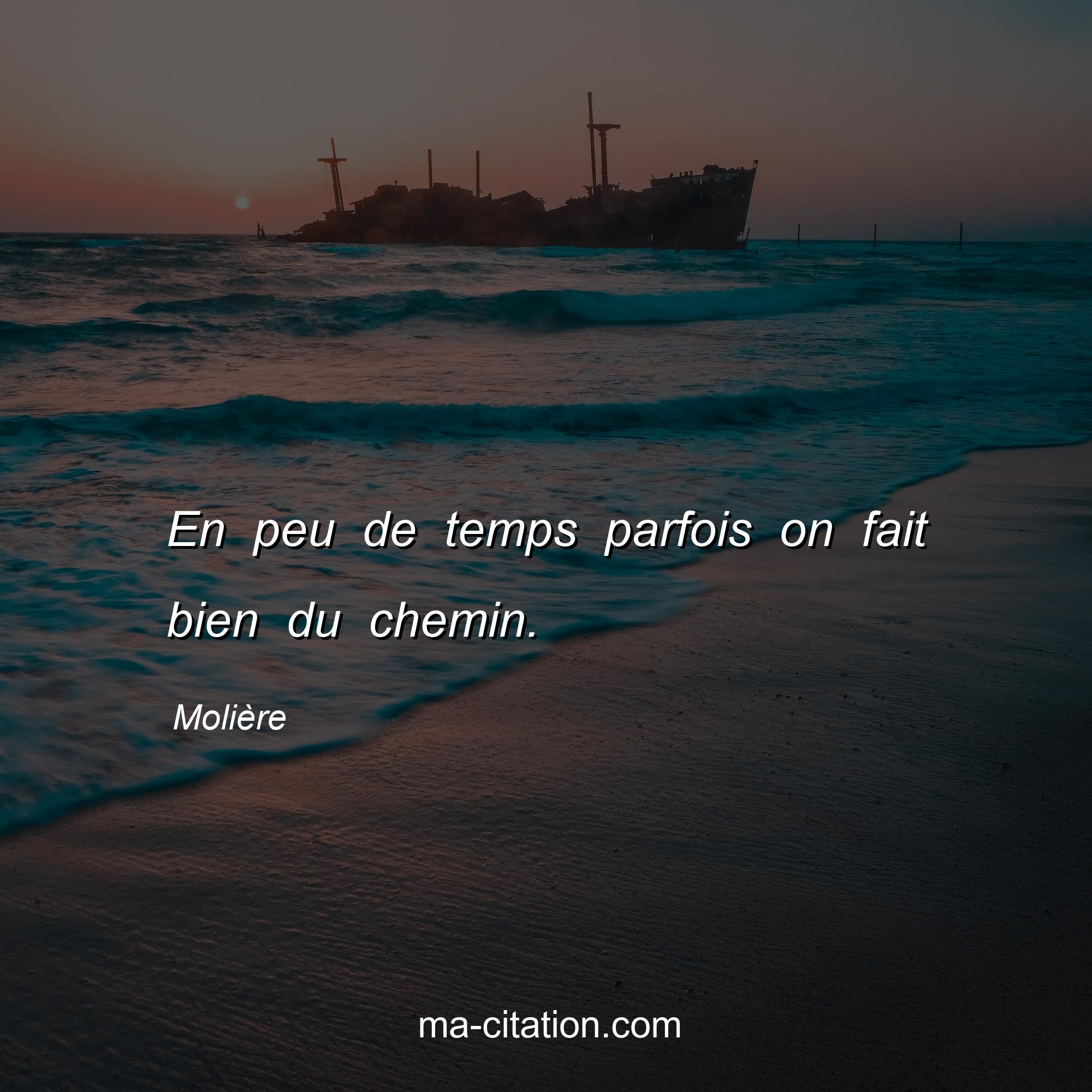 Molière est l'auteur de la citation sur la vie "En peu de temps parfois on fait bien du chemin.".