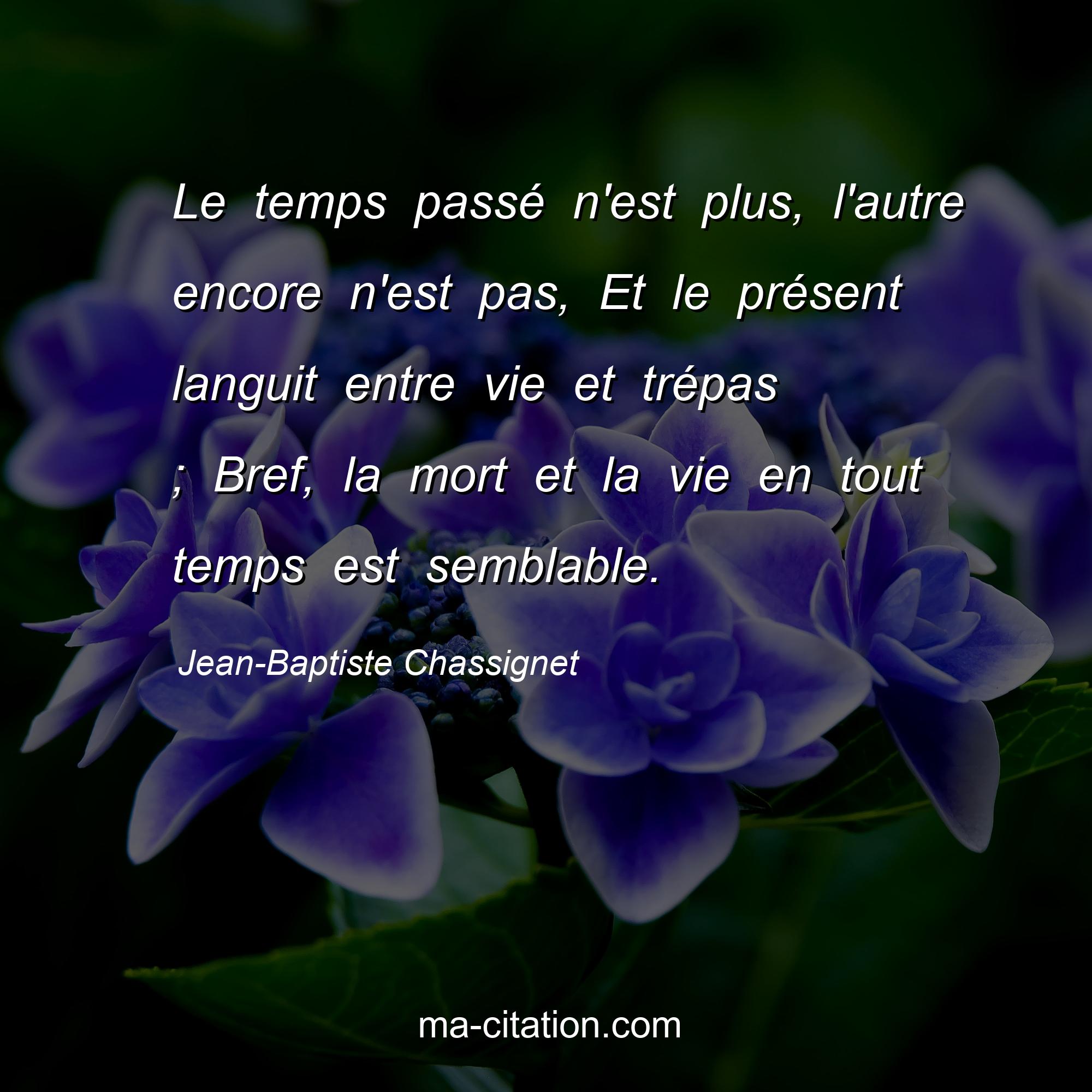 Citation sur la vie de Jean-Baptiste Chassignet :Le temps passé n'est plus, l'autre encore n'est pas, Et le présent languit entre vie et trépas ; Bref, la mort et la vie en tout temps est semblable.