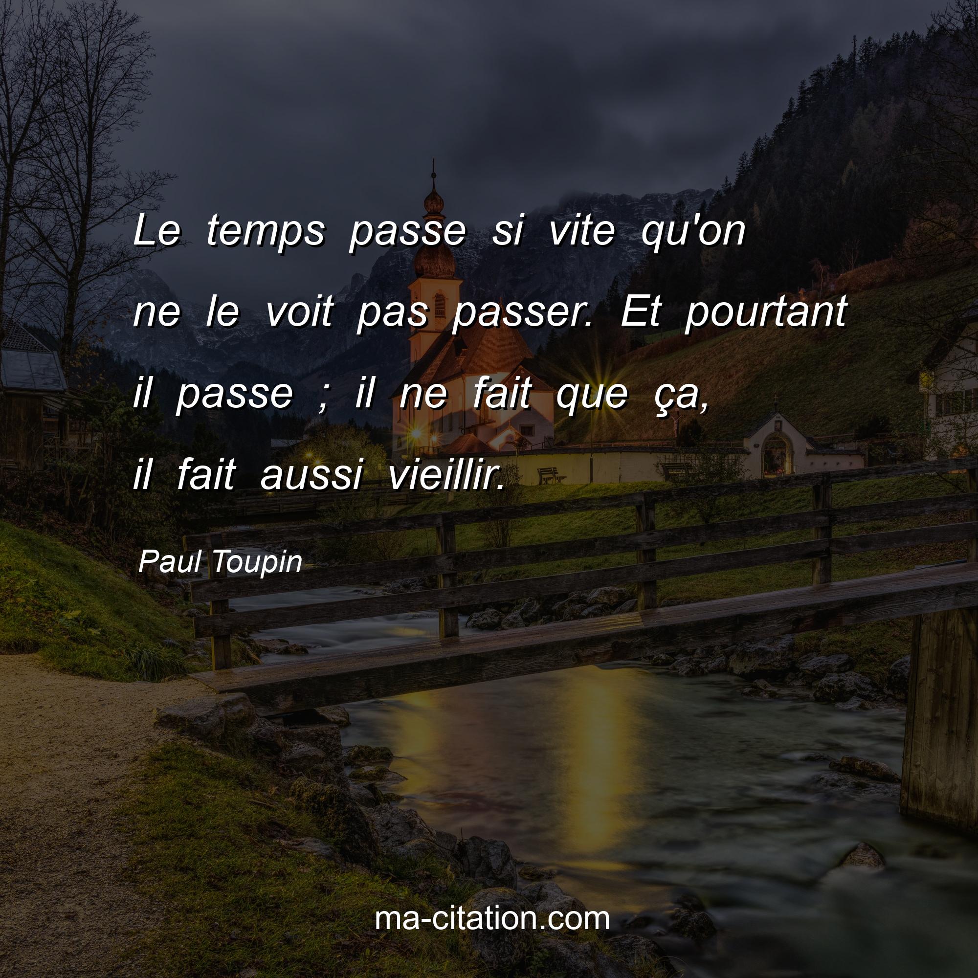 Citation sur la vie de Paul Toupin :Le temps passe si vite qu'on ne le voit pas passer. Et pourtant il passe ; il ne fait que ça, il fait aussi vieillir.