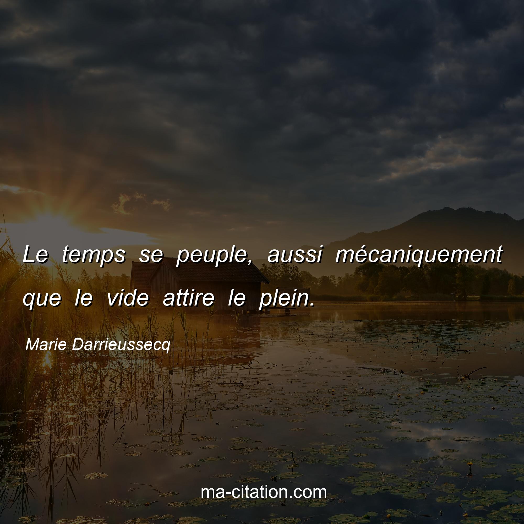 Citation sur la vie de Marie Darrieussecq :Le temps se peuple, aussi mécaniquement que le vide attire le plein.