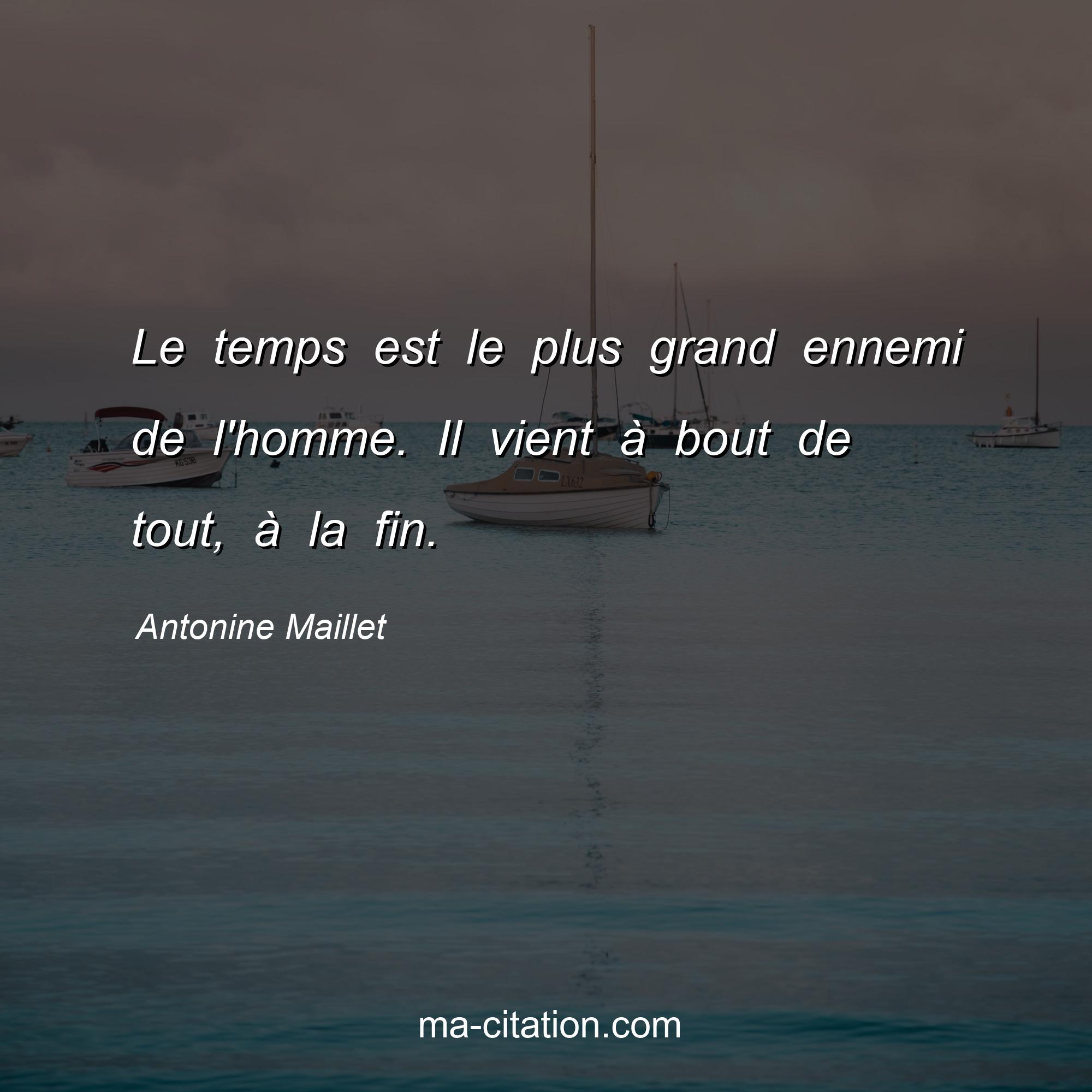 Citation sur la vie d'Antonine Maillet :Le temps est le plus grand ennemi de l'homme. Il vient à bout de tout, à la fin.