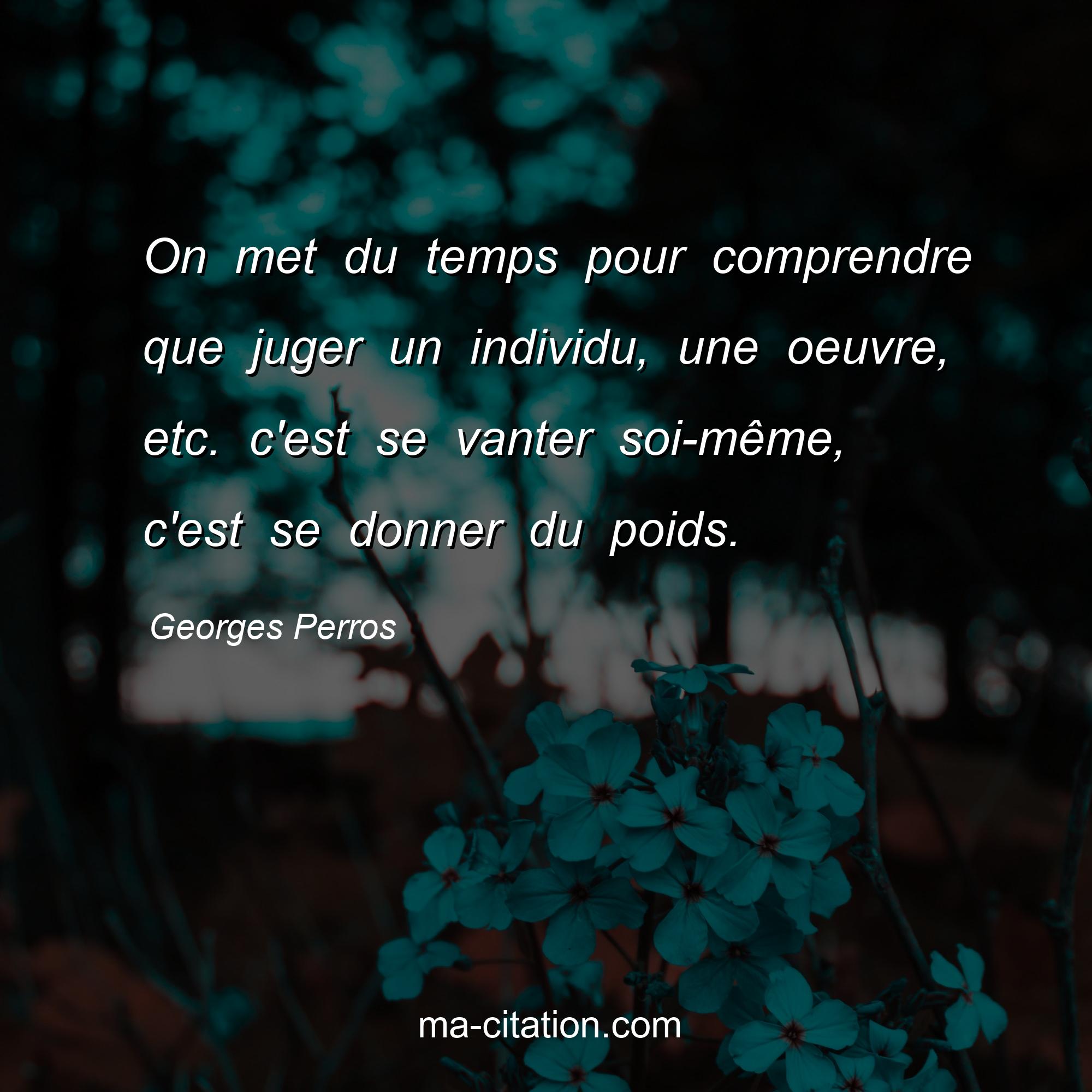 Citation sur la vie de Georges Perros :On met du temps pour comprendre que juger un individu, une oeuvre, etc. c'est se vanter soi-même, c'est se donner du poids.