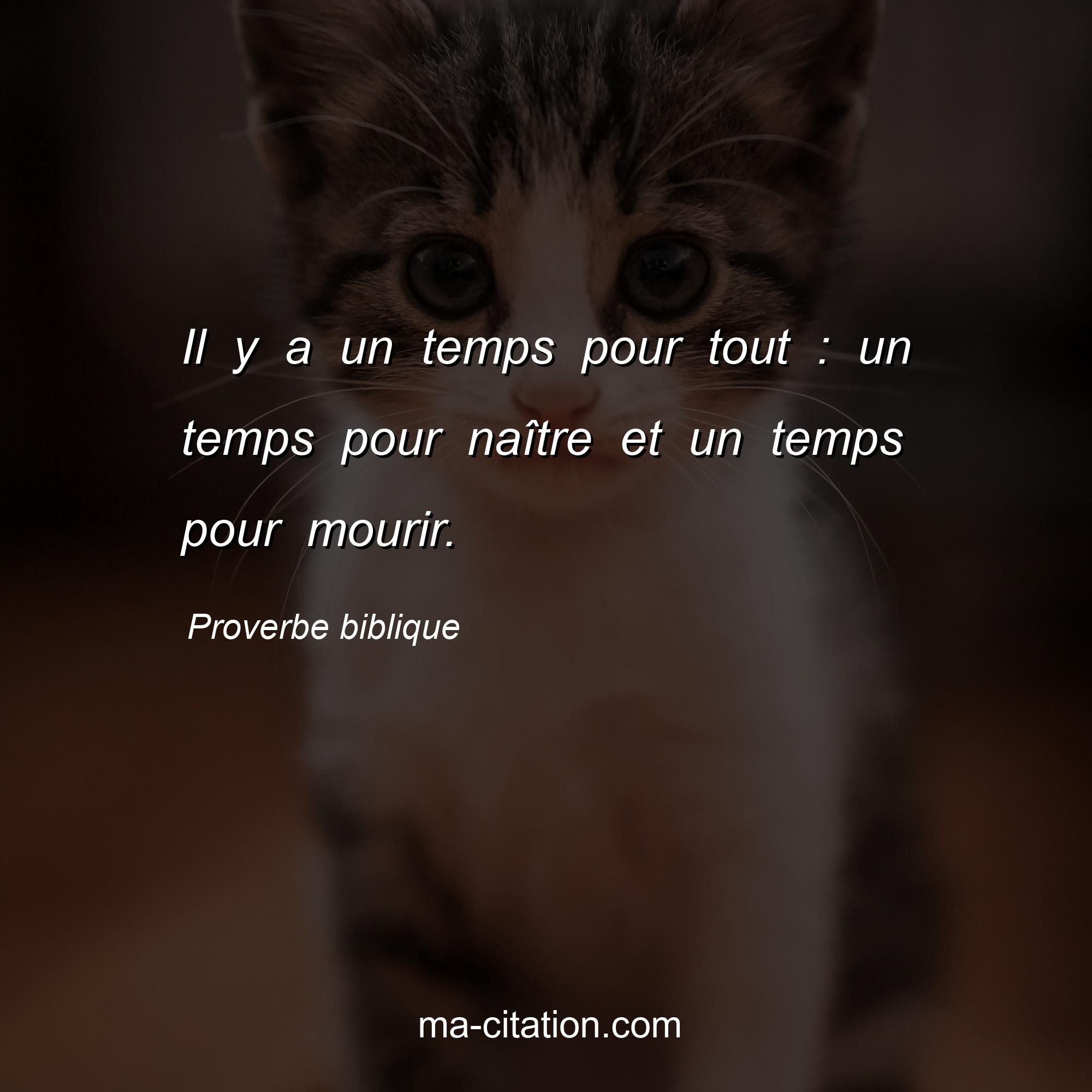 Proverbe biblique sur la vie :Il y a un temps pour tout : un temps pour naître et un temps pour mourir.