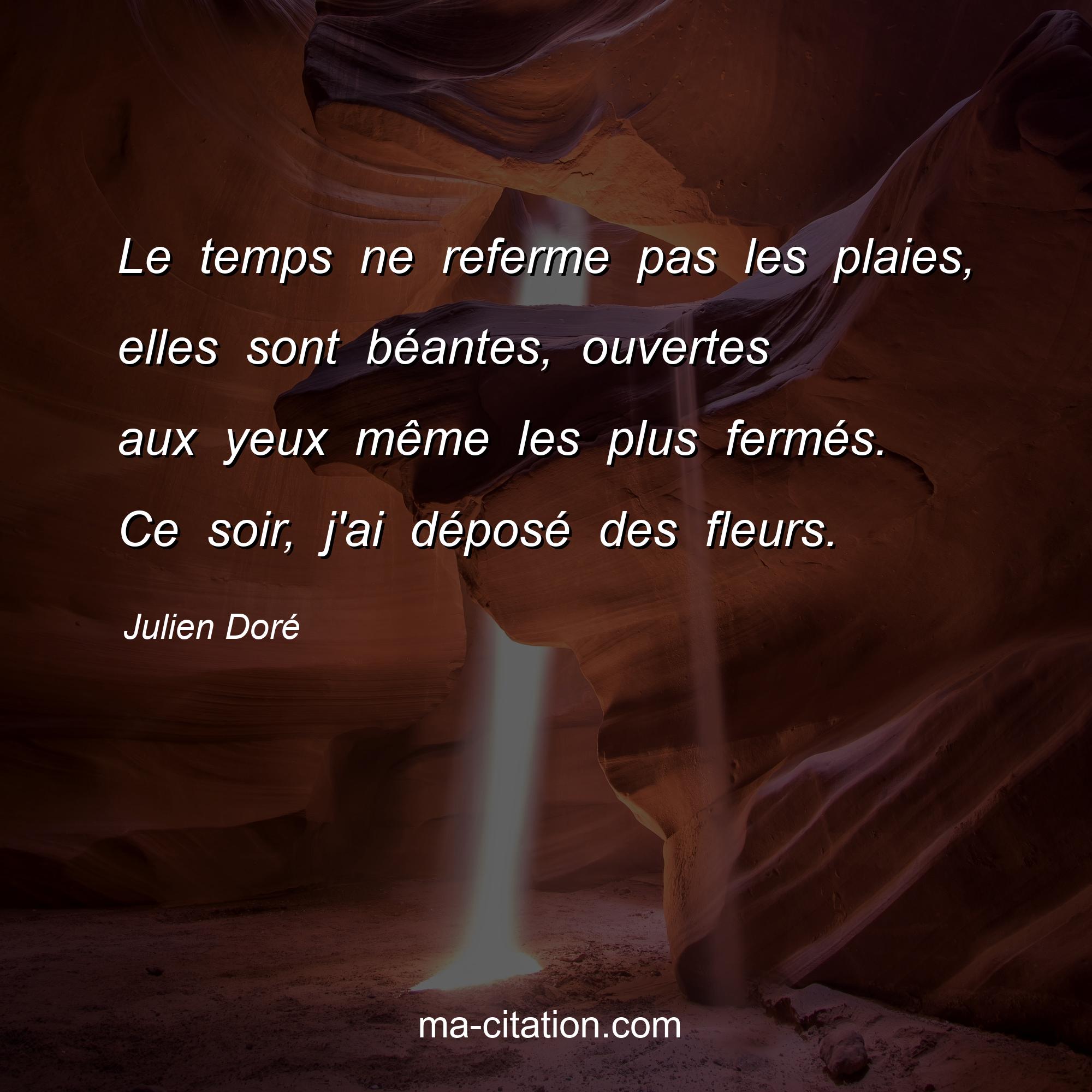 Citation sur la vie de Julien Doré :Le temps ne referme pas les plaies, elles sont béantes, ouvertes aux yeux même les plus fermés. Ce soir, j'ai déposé des fleurs.