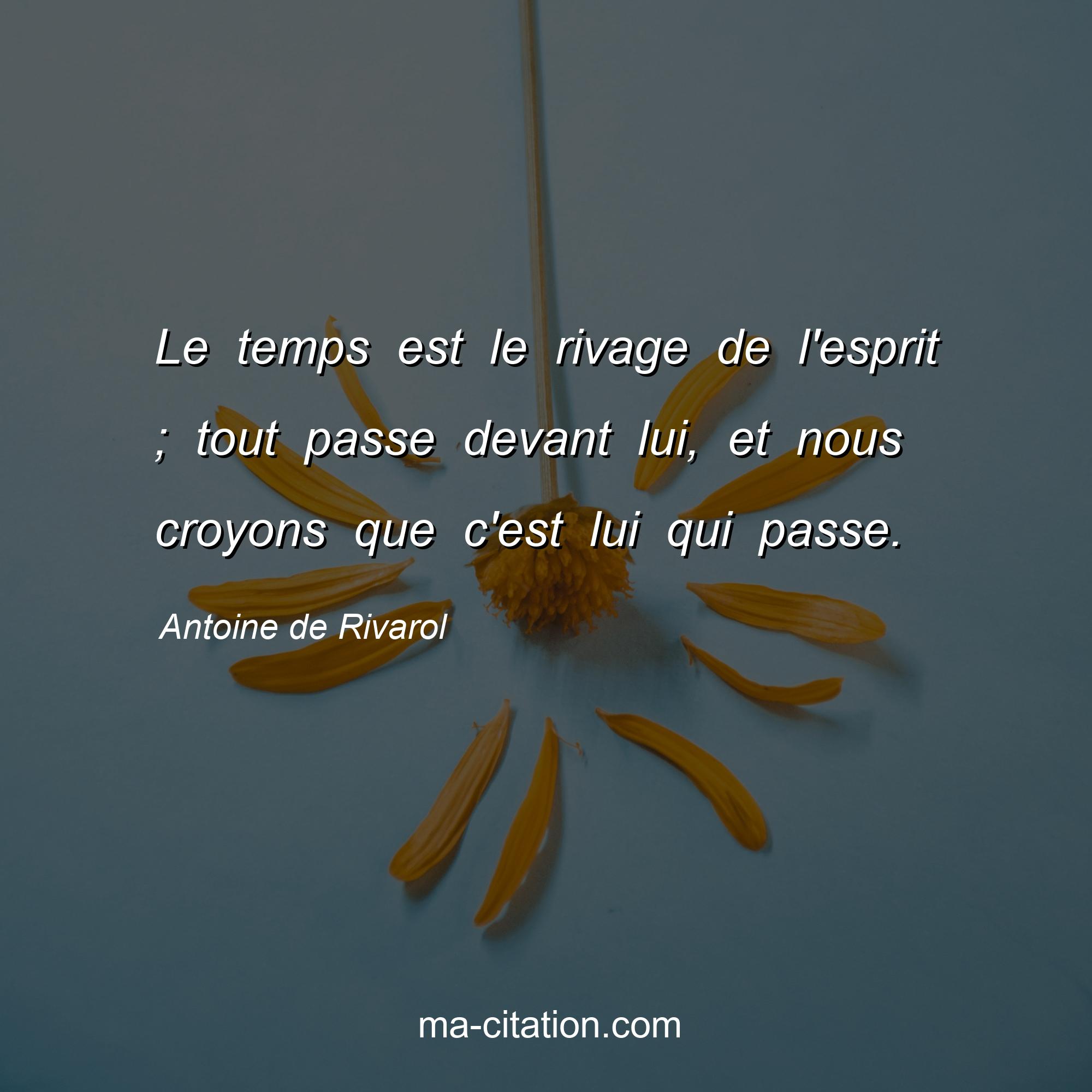 Citation sur la vie d'Antoine de Rivarol :Le temps est le rivage de l'esprit ; tout passe devant lui, et nous croyons que c'est lui qui passe.