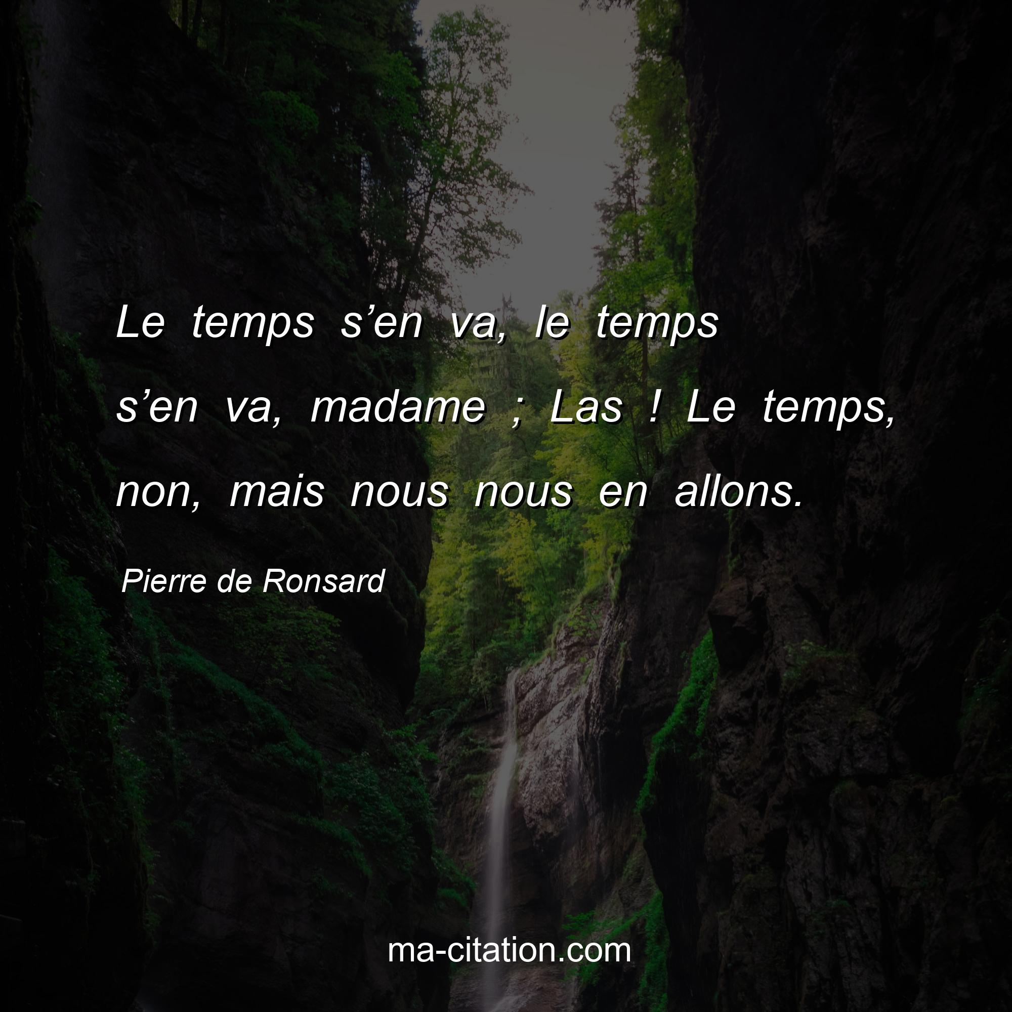 Citation sur la vie de Pierre de Ronsard :Le temps s’en va, le temps s’en va, madame ; Las ! Le temps, non, mais nous nous en allons.