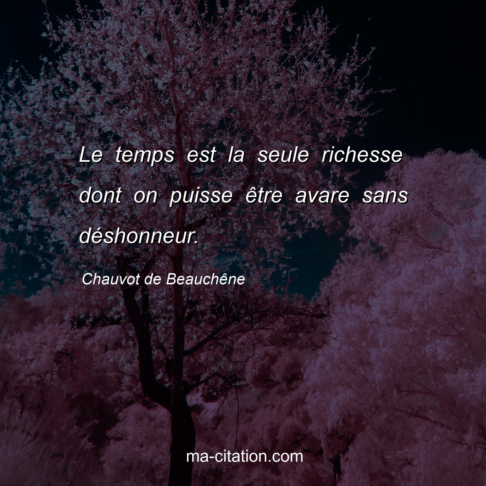 Citation sur la vie de Chauvot de Beauchêne :Le temps est la seule richesse dont on puisse être avare sans déshonneur.