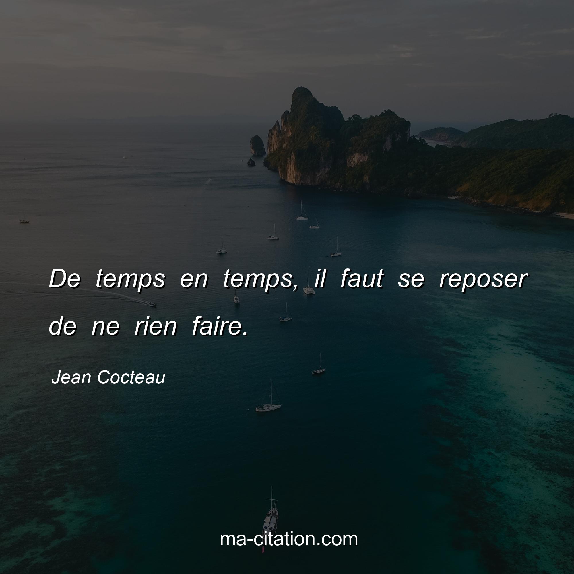 Jean Cocteau est l'auteur de la citation sur la vie "De temps en temps, il faut se reposer de ne rien faire.".