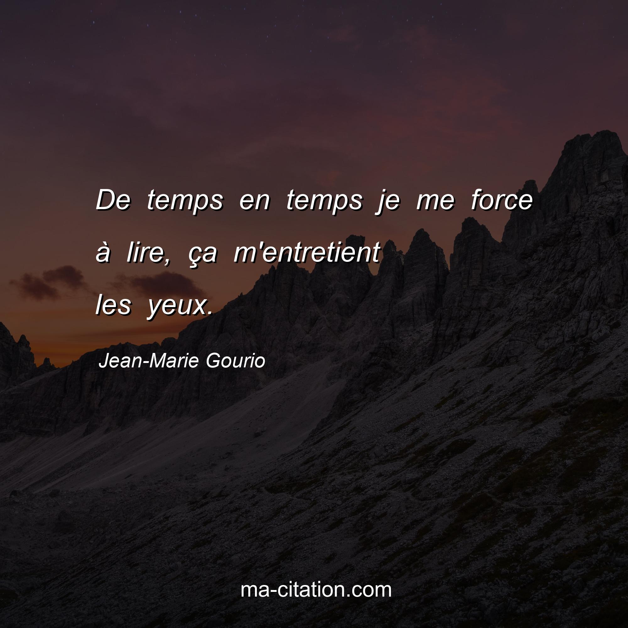 Citation sur la vie de Jean-Marie Gourio :De temps en temps je me force à lire, ça m'entretient les yeux.
