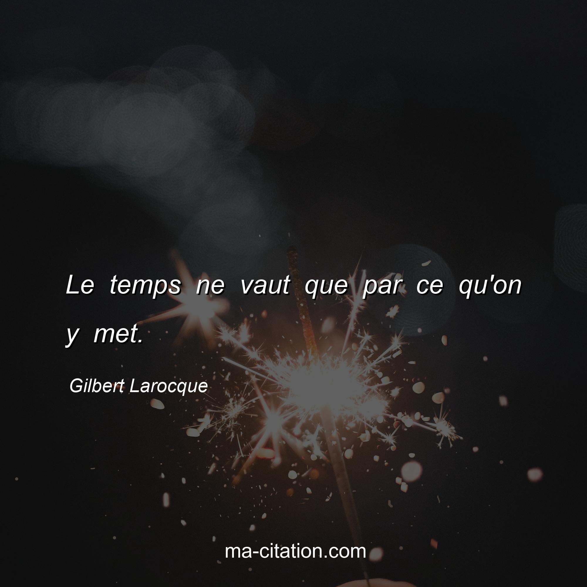 Citation sur la vie de Gilbert Larocque :Le temps ne vaut que par ce qu'on y met.