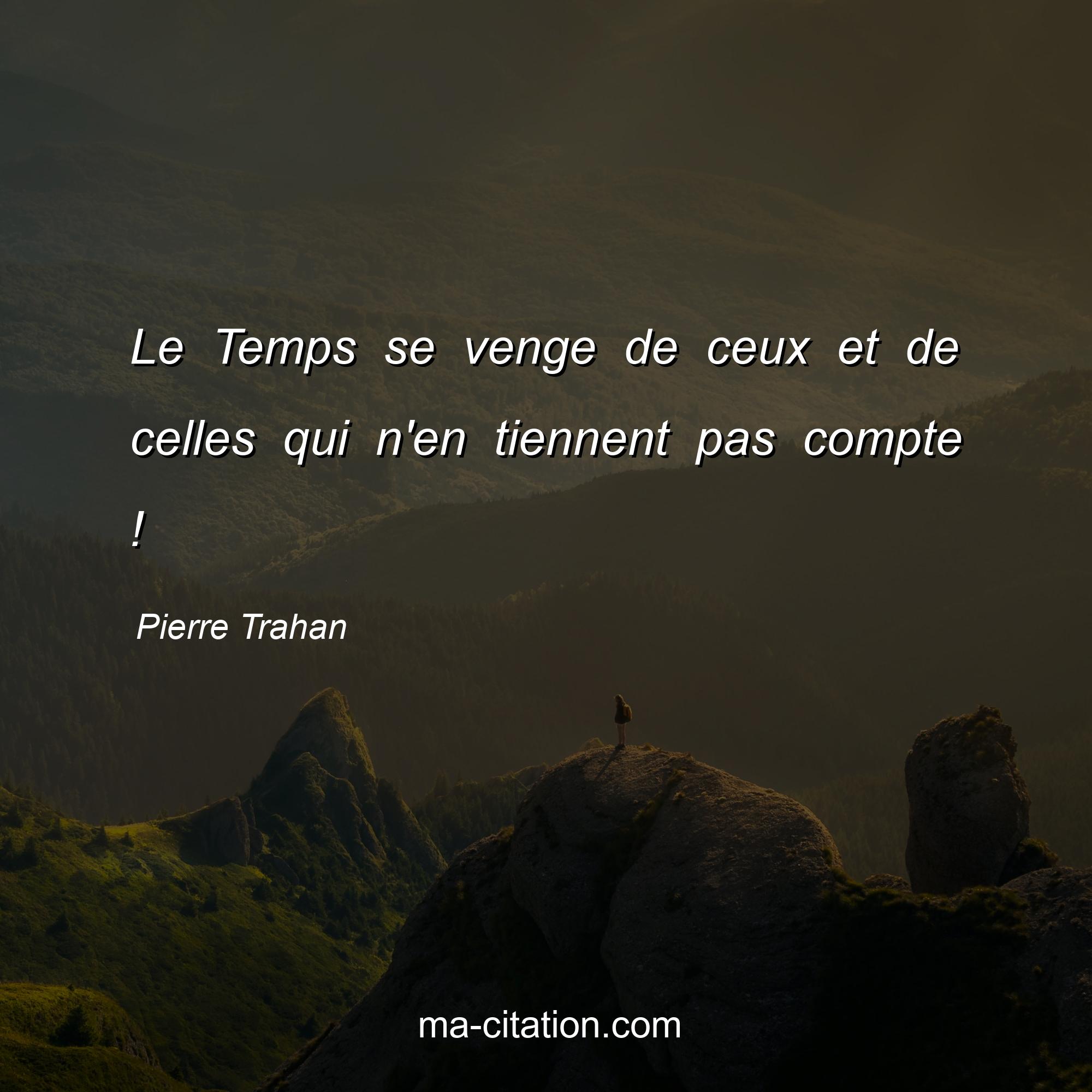 Pierre Trahan est l'auteur de la citation sur la vie "Le Temps se venge de ceux et de celles qui n'en tiennent pas compte !".