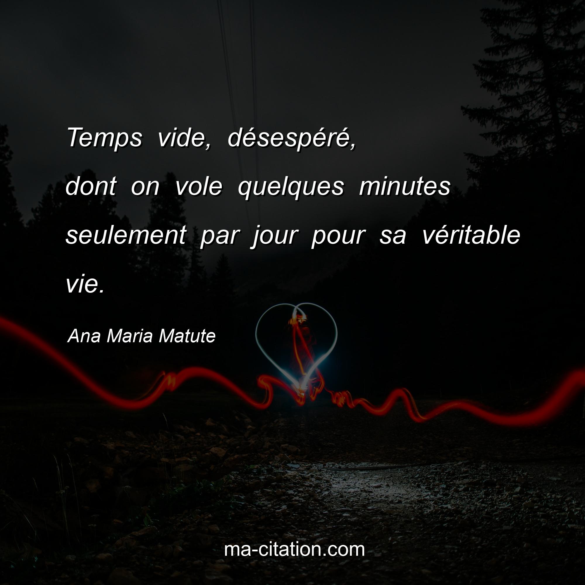 Ana Maria Matute est l'auteur de la citation sur la vie "Temps vide, désespéré, dont on vole quelques minutes seulement par jour pour sa véritable vie.".
