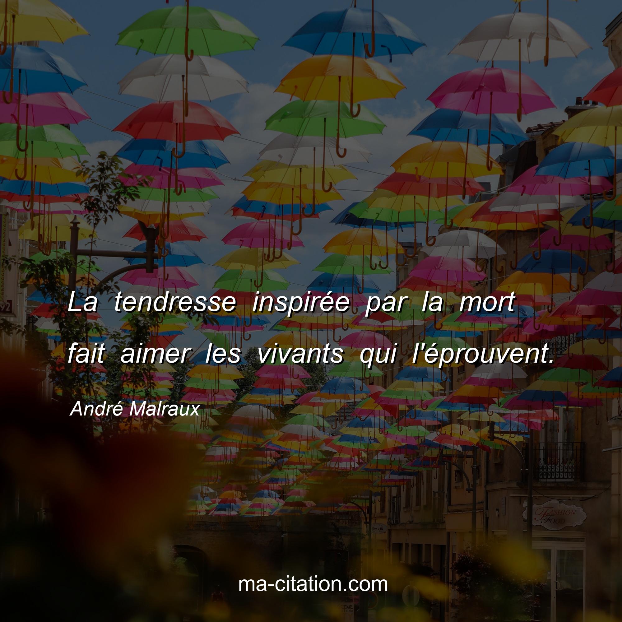 Citation sur la vie d'André Malraux :La tendresse inspirée par la mort fait aimer les vivants qui l'éprouvent.