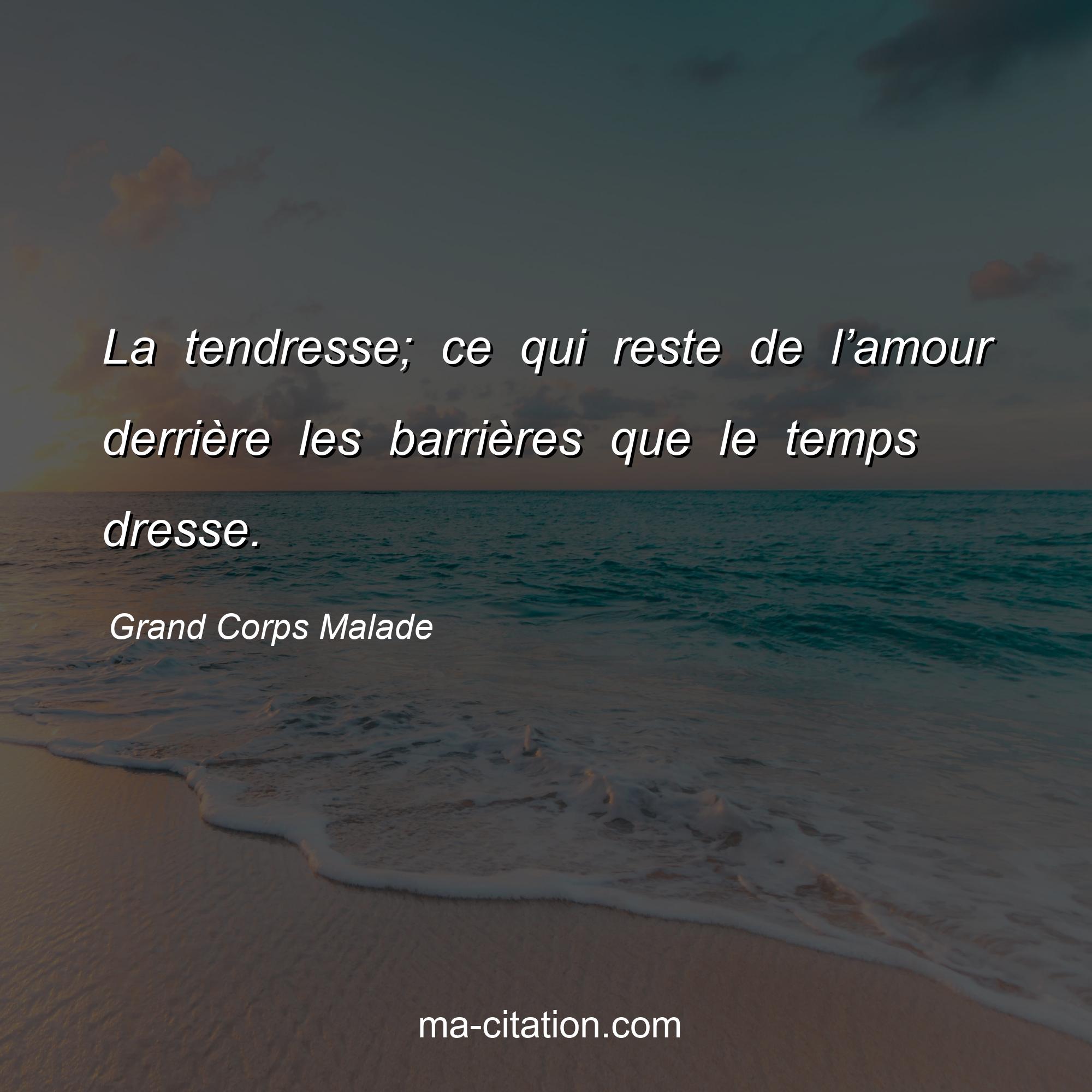 Grand Corps Malade est l'auteur de la citation sur la vie "La tendresse; ce qui reste de l’amour derrière les barrières que le temps dresse.".