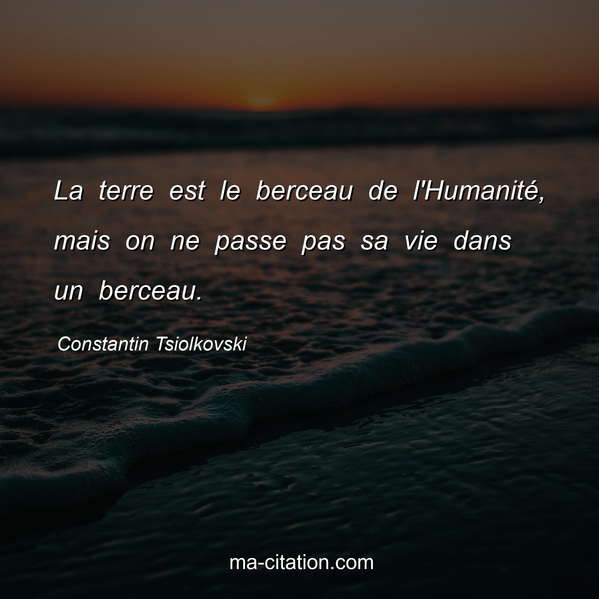 Citation sur la vie de Constantin Tsiolkovski :La terre est le berceau de l'Humanité, mais on ne passe pas sa vie dans un berceau.