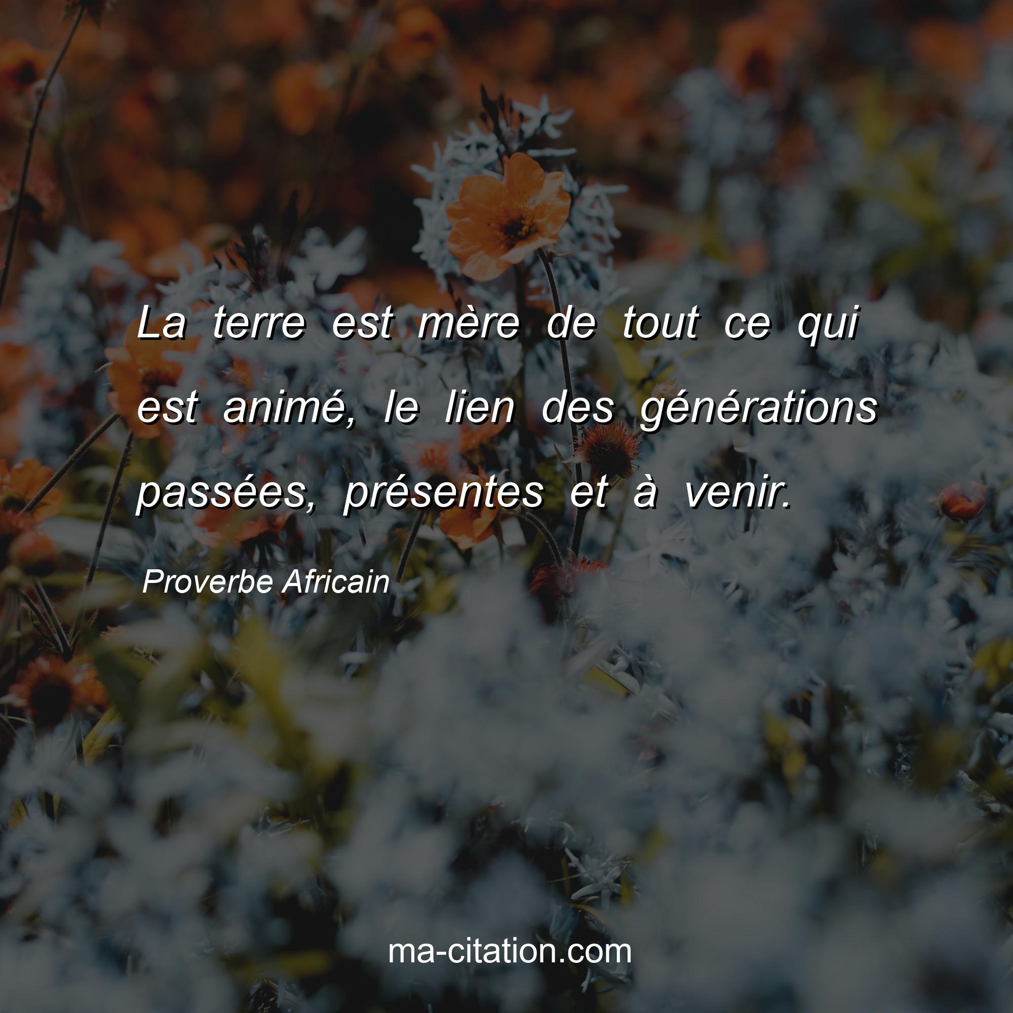 Proverbe Africain sur la vie :La terre est mère de tout ce qui est animé, le lien des générations passées, présentes et à venir.