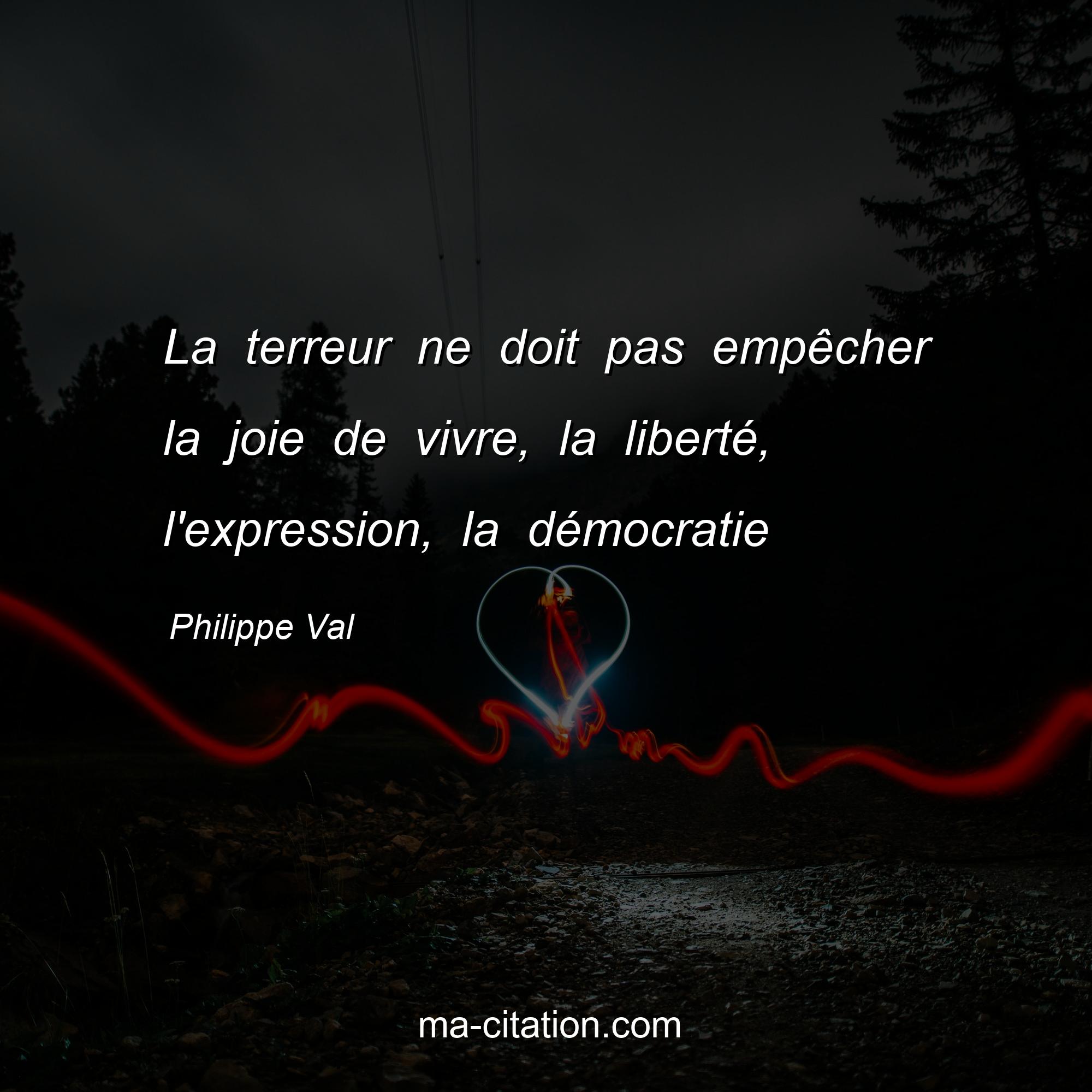 Philippe Val est l'auteur de la citation sur la vie "La terreur ne doit pas empêcher la joie de vivre, la liberté, l'expression, la démocratie".