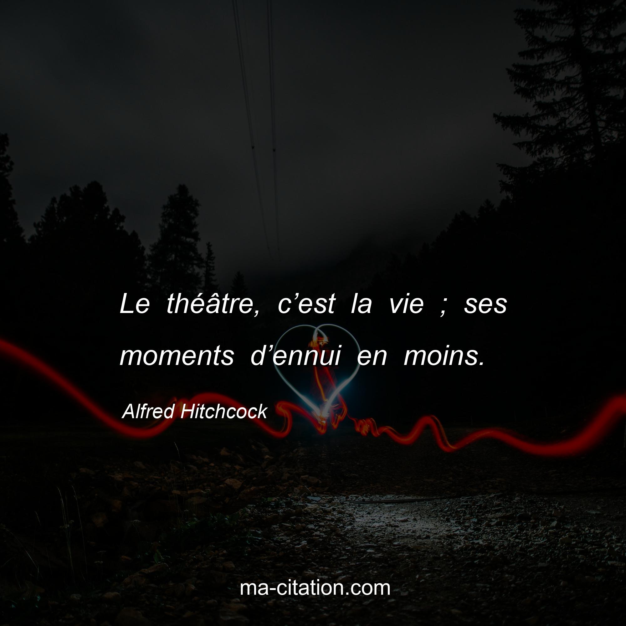 Alfred Hitchcock est l'auteur de la citation sur la vie "Le théâtre, c’est la vie ; ses moments d’ennui en moins.".
