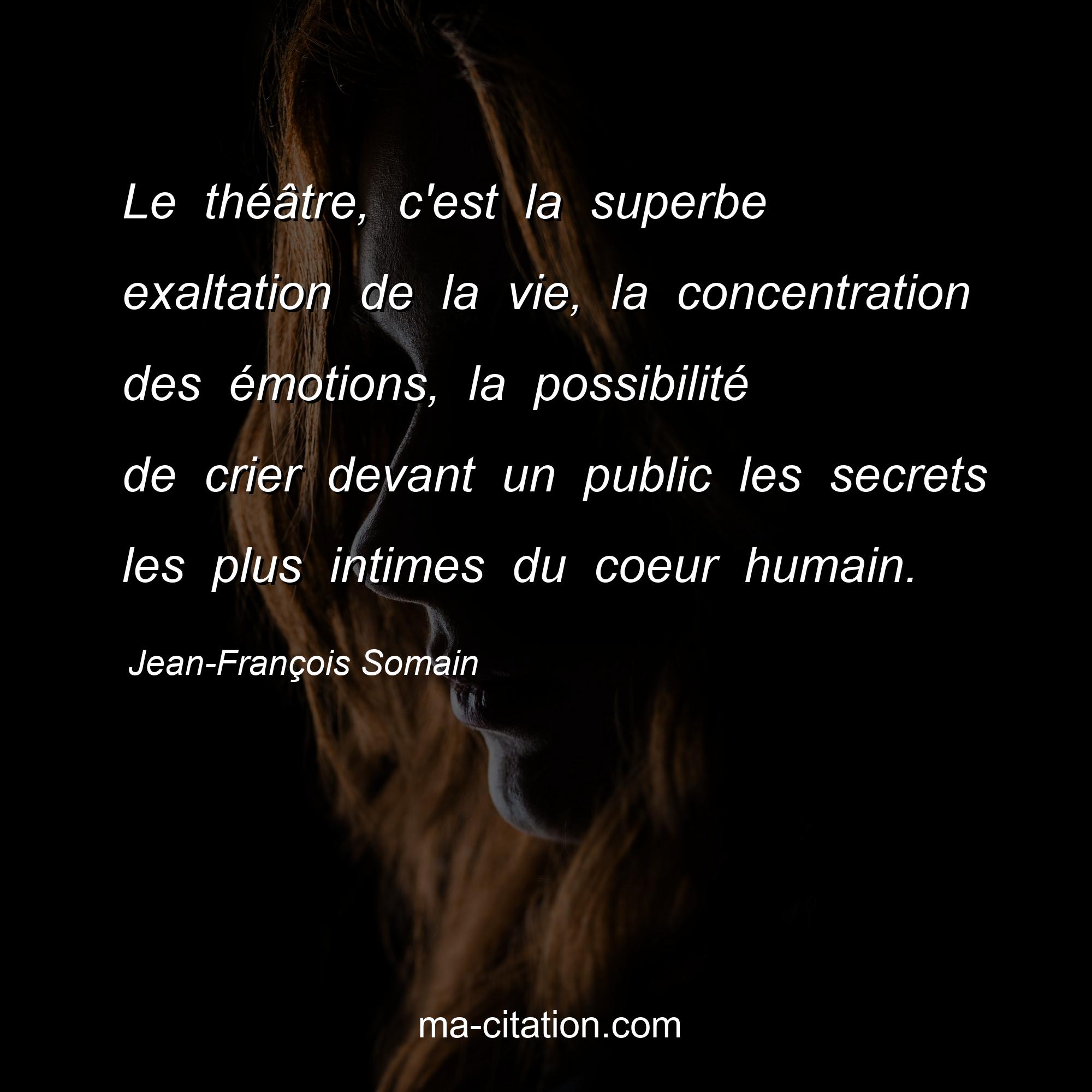 Jean-François Somain est l'auteur de la citation sur la vie "Le théâtre, c'est la superbe exaltation de la vie, la concentration des émotions, la possibilité de crier devant un public les secrets les plus intimes du coeur humain.".