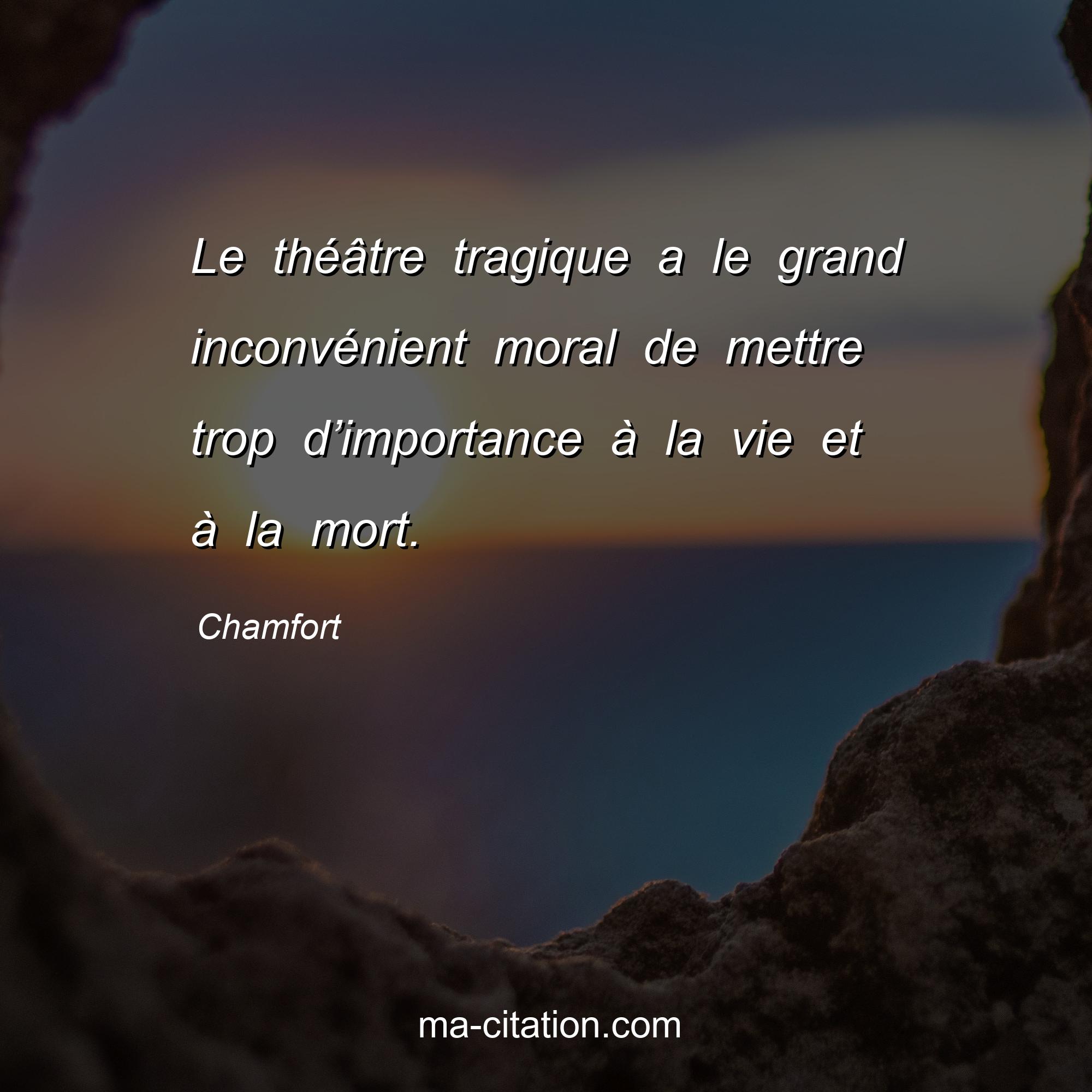 Citation sur la vie de Chamfort :Le théâtre tragique a le grand inconvénient moral de mettre trop d’importance à la vie et à la mort.