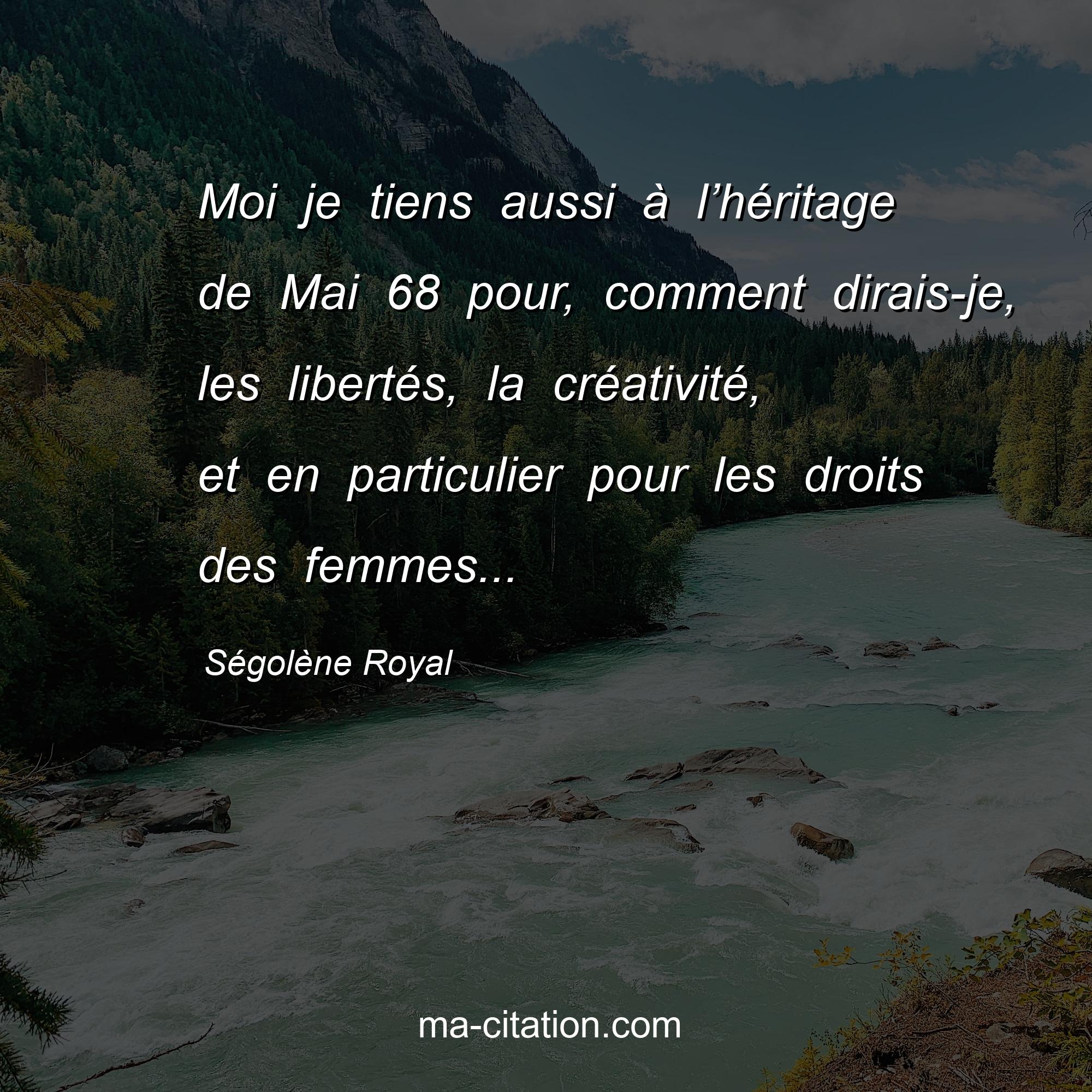 Citation sur la vie de Ségolène Royal :Moi je tiens aussi à l’héritage de Mai 68 pour, comment dirais-je, les libertés, la créativité, et en particulier pour les droits des femmes...