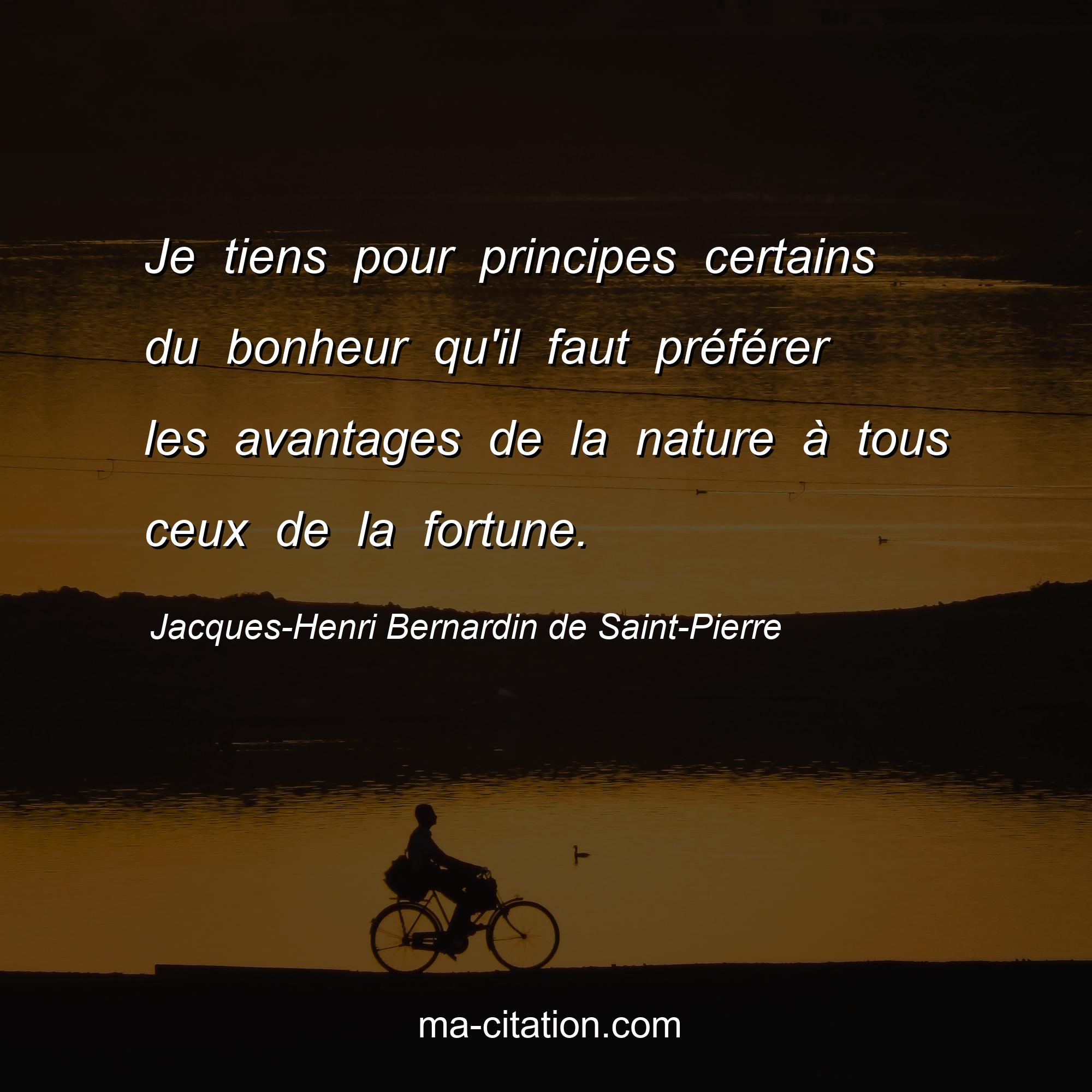 Citation sur la vie de Jacques-Henri Bernardin de Saint-Pierre :Je tiens pour principes certains du bonheur qu'il faut préférer les avantages de la nature à tous ceux de la fortune.