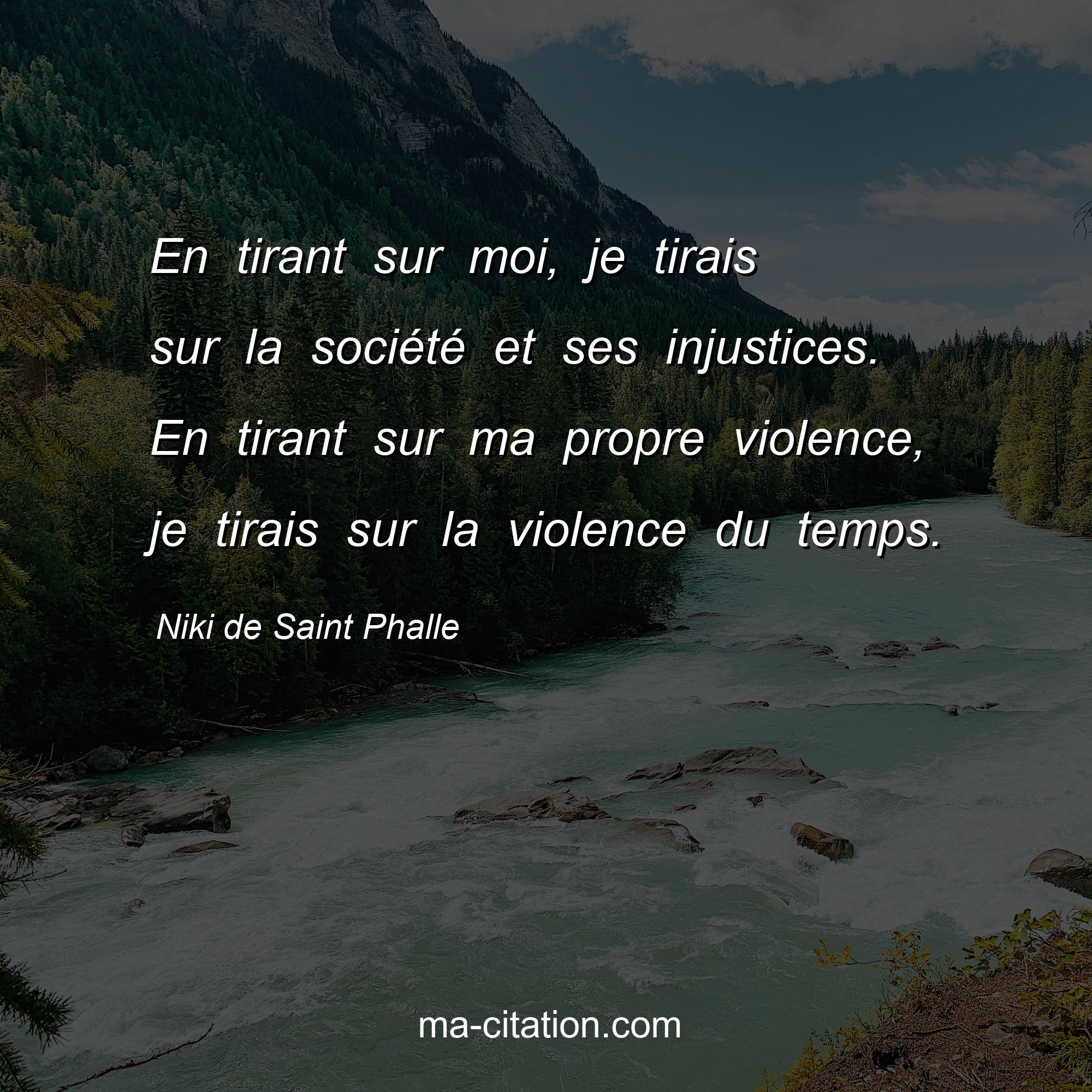 Niki de Saint Phalle est l'auteur de la citation sur la vie "En tirant sur moi, je tirais sur la société et ses injustices. En tirant sur ma propre violence, je tirais sur la violence du temps.".