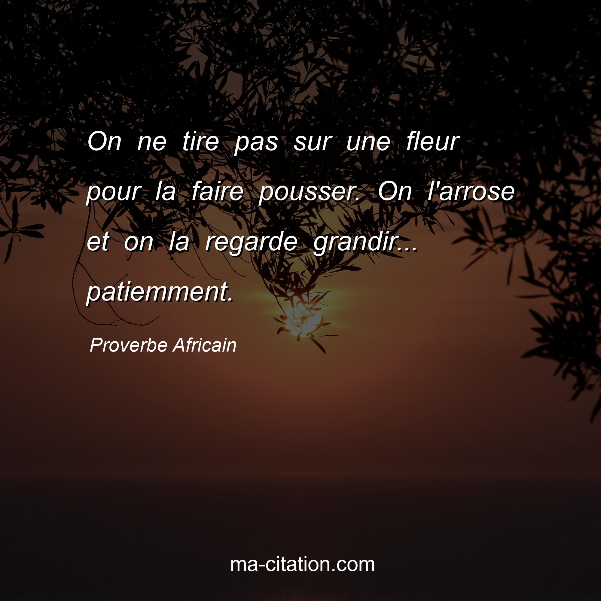 Proverbe Africain sur la vie :On ne tire pas sur une fleur pour la faire pousser. On l'arrose et on la regarde grandir... patiemment.