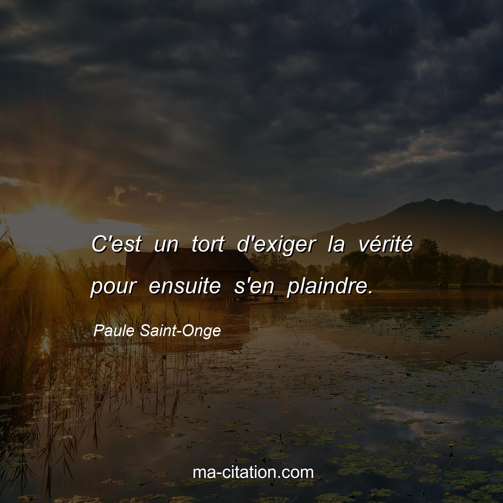 Citation sur la vie de Paule Saint-Onge :C'est un tort d'exiger la vérité pour ensuite s'en plaindre.