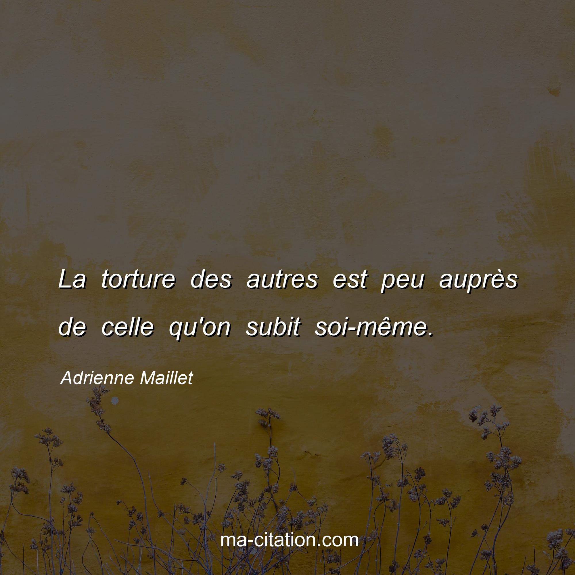 Citation sur la vie d'Adrienne Maillet :La torture des autres est peu auprès de celle qu'on subit soi-même.