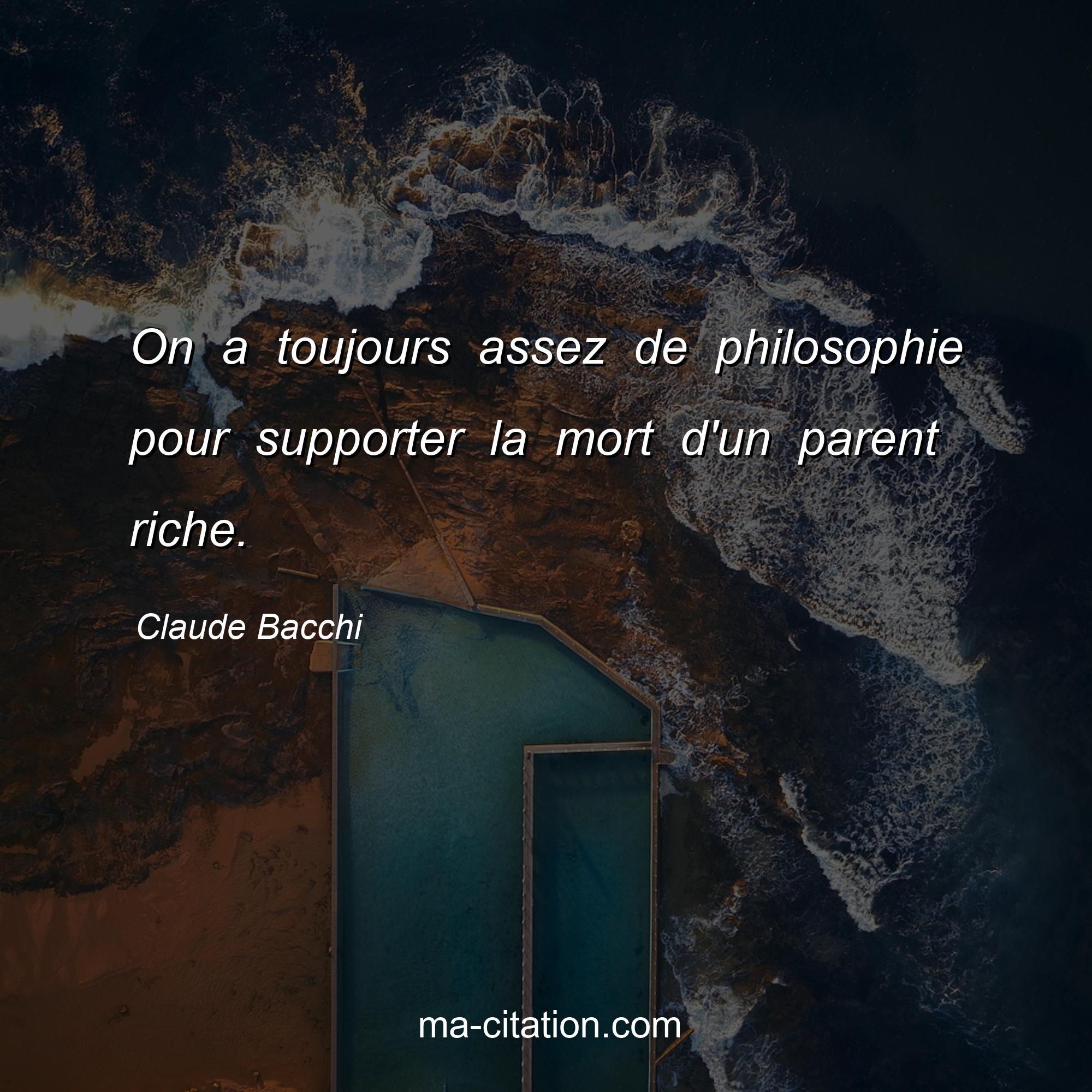 Citation sur la vie de Claude Bacchi :On a toujours assez de philosophie pour supporter la mort d'un parent riche.