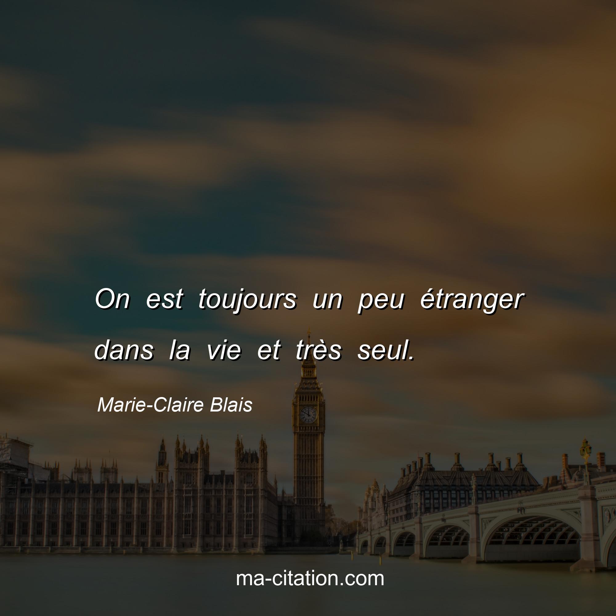 Marie-Claire Blais est l'auteur de la citation sur la vie "On est toujours un peu étranger dans la vie et très seul.".