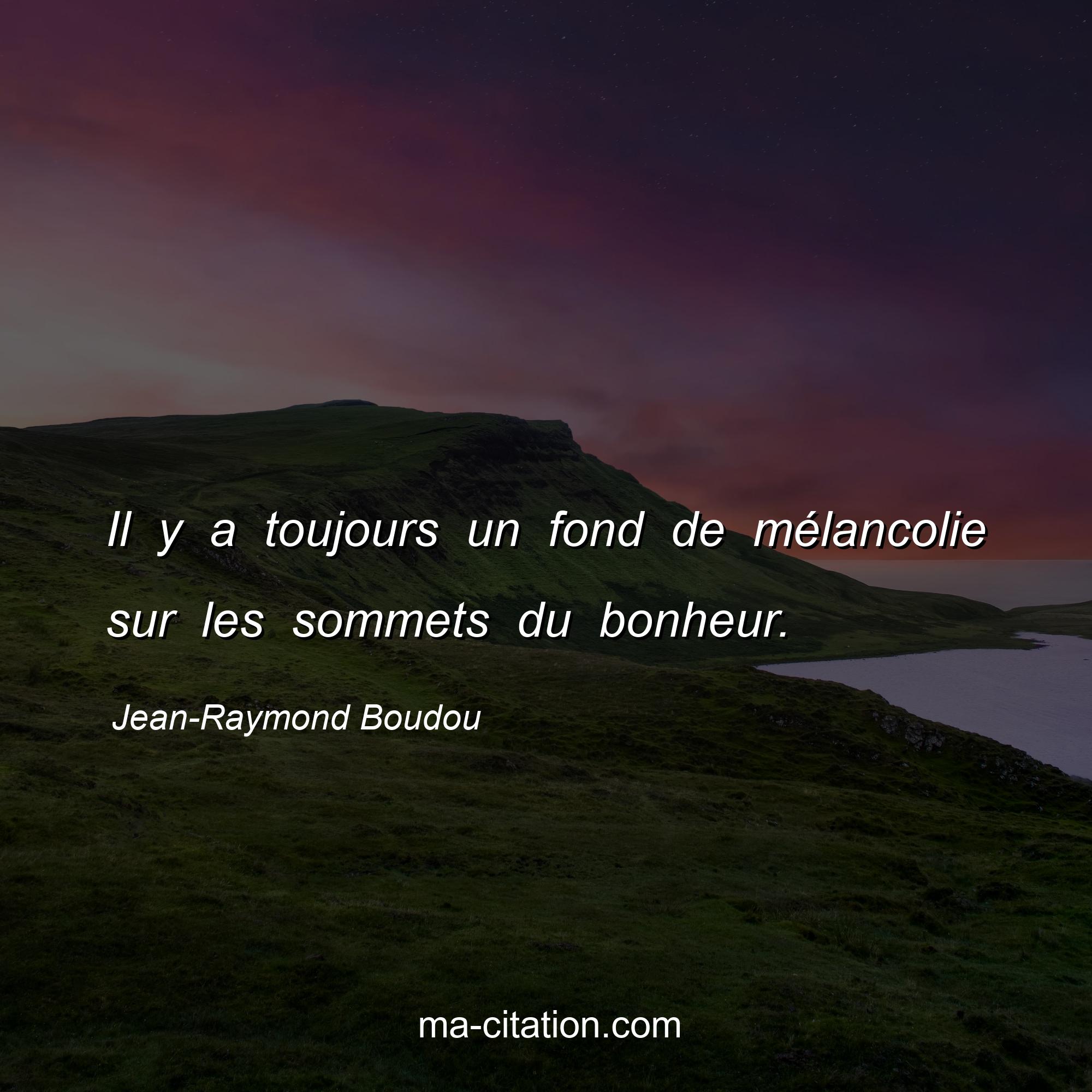 Jean-Raymond Boudou est l'auteur de la citation sur la vie "Il y a toujours un fond de mélancolie sur les sommets du bonheur.".