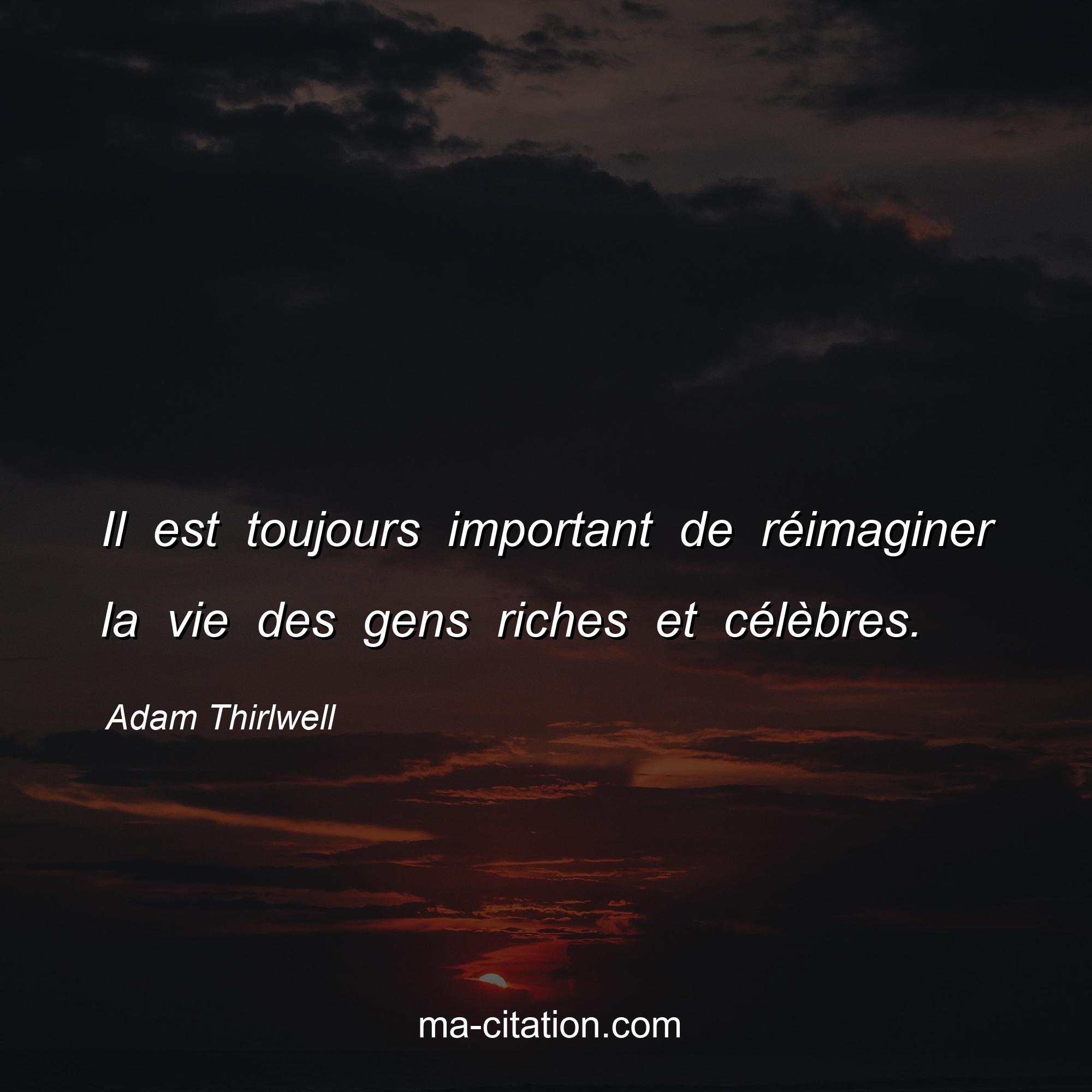 Adam Thirlwell est l'auteur de la citation sur la vie "Il est toujours important de réimaginer la vie des gens riches et célèbres.".