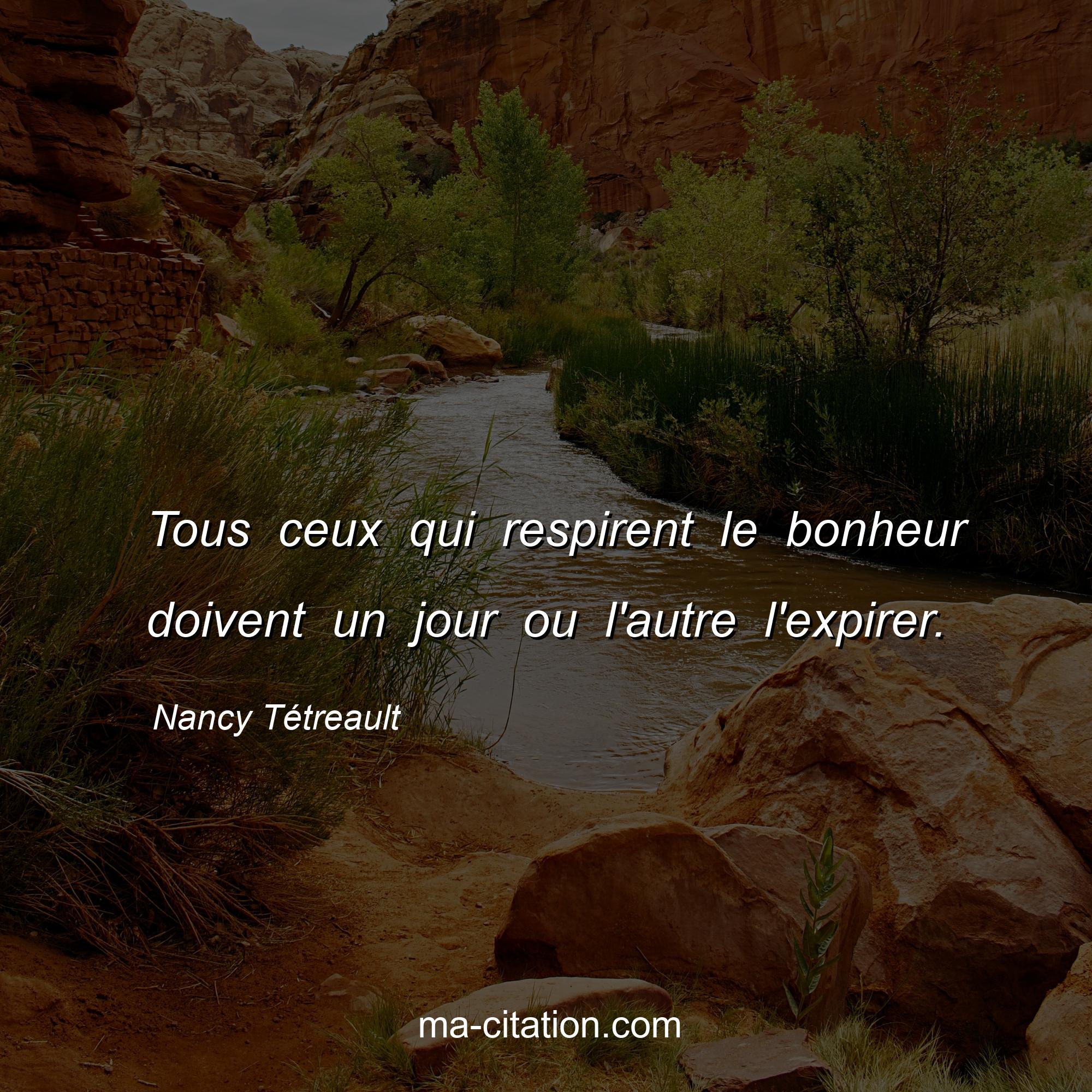 Nancy Tétreault est l'auteur de la citation sur la vie "Tous ceux qui respirent le bonheur doivent un jour ou l'autre l'expirer.".