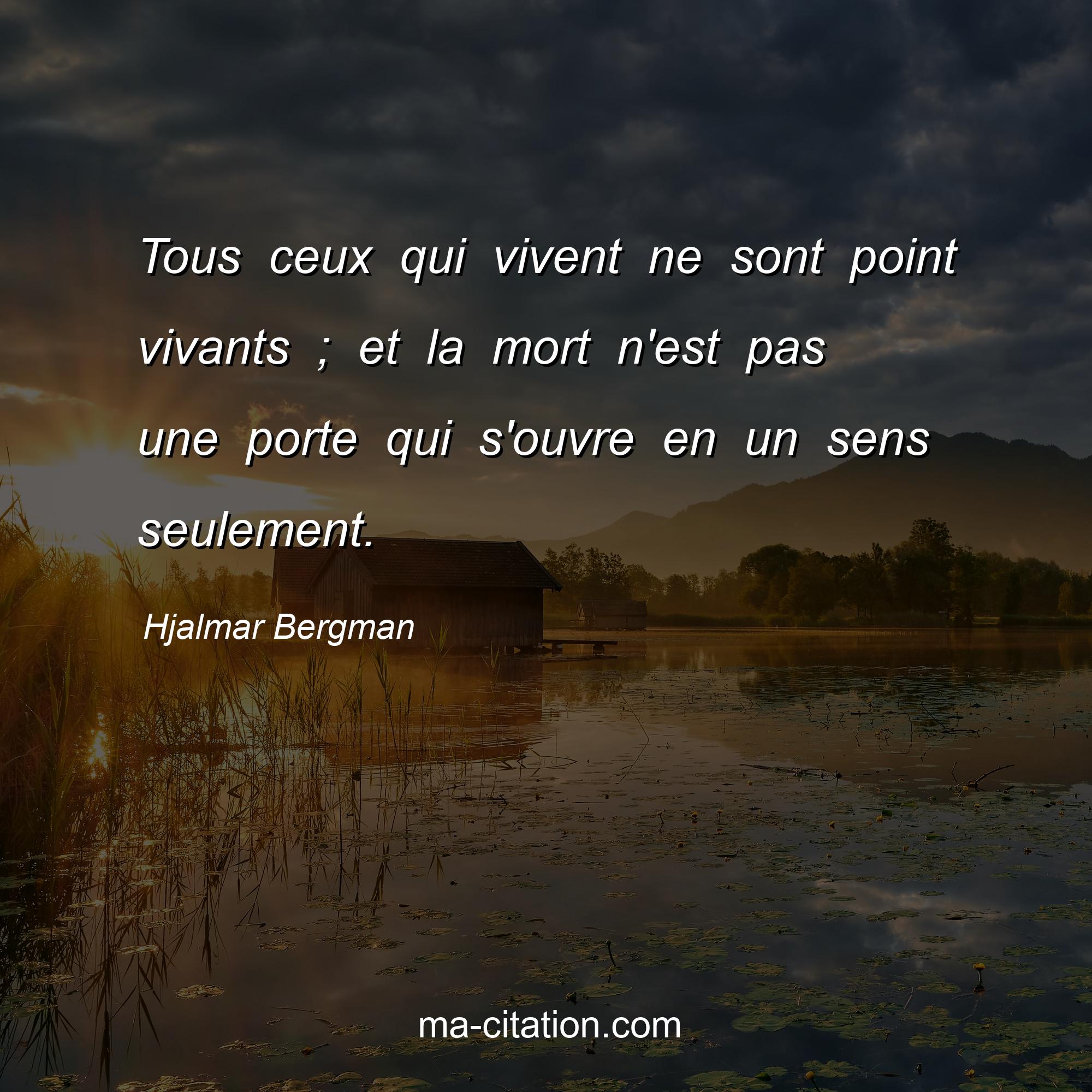 Citation sur la vie de Hjalmar Bergman :Tous ceux qui vivent ne sont point vivants ; et la mort n'est pas une porte qui s'ouvre en un sens seulement.
