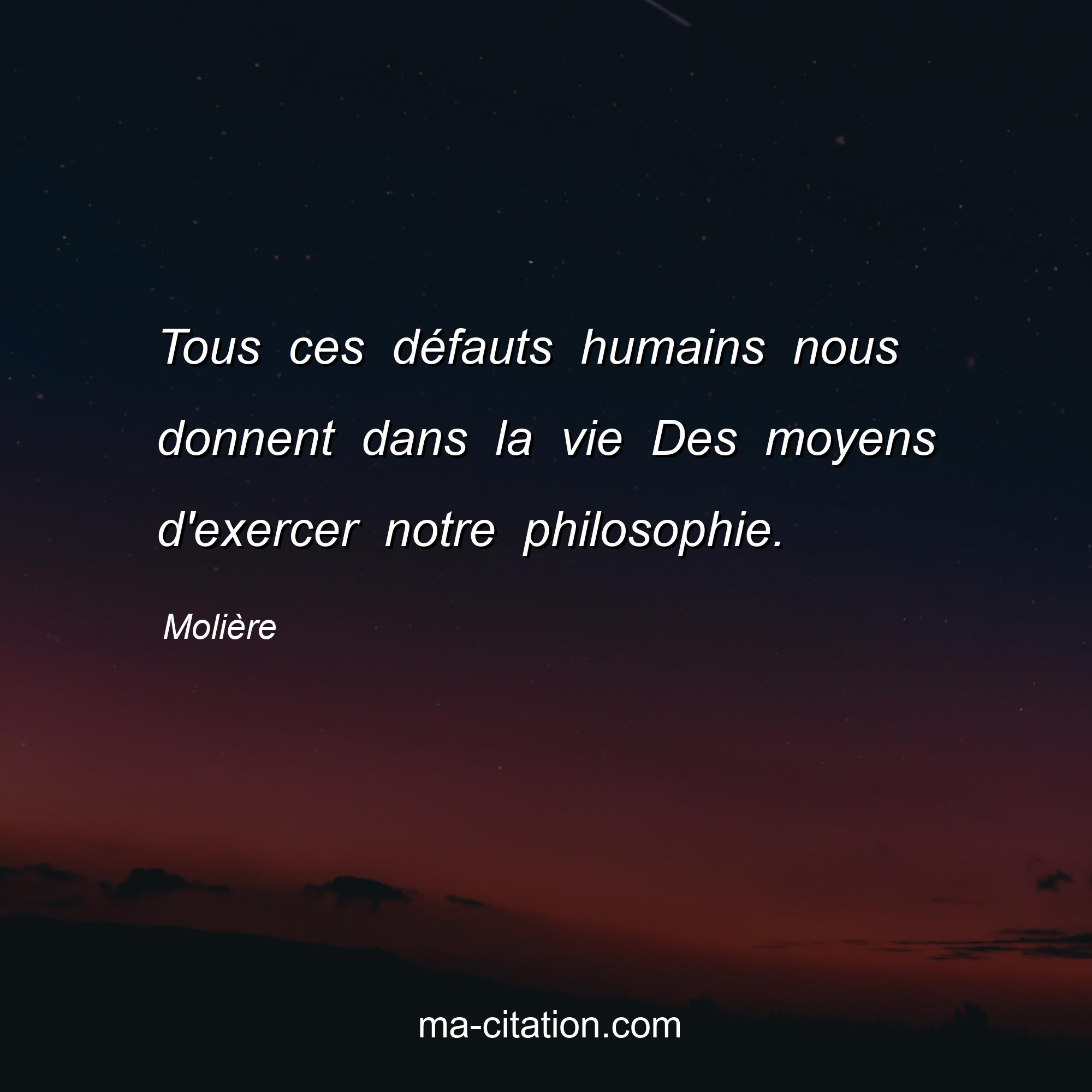 Citation sur la vie de Molière :Tous ces défauts humains nous donnent dans la vie Des moyens d'exercer notre philosophie.