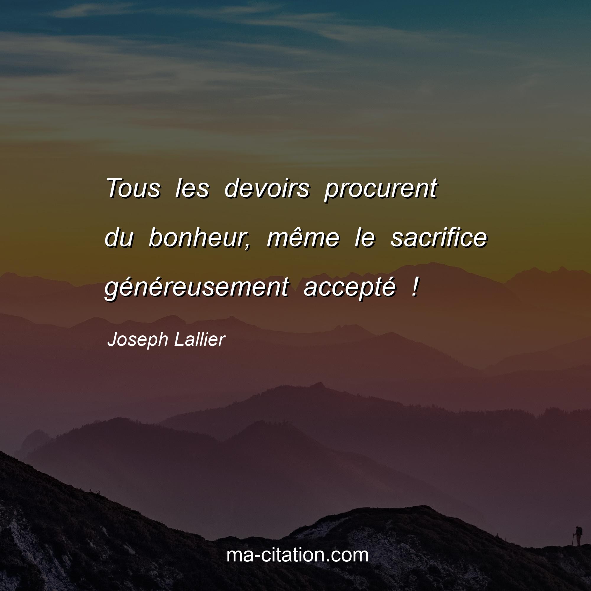 Joseph Lallier est l'auteur de la citation sur la vie "Tous les devoirs procurent du bonheur, même le sacrifice généreusement accepté !".